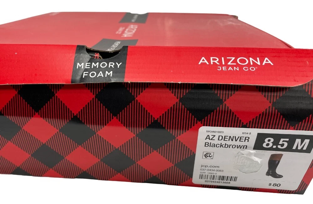 Model: Denver US Shoe Size: 8.5 Shoe Width: M Accents: Buckle Brand: Arizona Jean Co Character: Boots Style: Riding Boot Occasion: Business, Casual, Party/Cocktail, Travel, Workwear Closure: Zip Color: Black brown Theme: American, Equestrian, Modern Toe Shape: Round Toe Pattern: Solid Department: Women Heel Height: Mid (2-2.9 in) Features: Comfort, Lightweight, Memory Foam Upper Material: Faux Leather Heel Style: Block Type: Boot Shoe Shaft Style: Knee High
