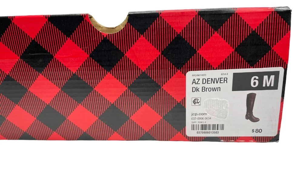 Brand: Arizona Jean Co Shoe Shaft Style: Knee High Features: Comfort, Lightweight, Memory Foam Seller Notes: “New with Open Box. No Issues Never worn. Free No Hassle Returns. Buy With Confidence” US Shoe Size: 6 Character: Boots Type: Boot Style: Riding Boot Shoe Width: M Theme: American, Equestrian, Modern Accents: Buckle Model: Denver Heel Height: Mid (2-2.9 in) Toe Shape: Round Toe Upper Material: Faux Leather Pattern: Solid Occasion: Business, Casual, Party/Cocktail, Travel, Workwear Closure: Zip Color: Brown Department: Women Heel Style: Block