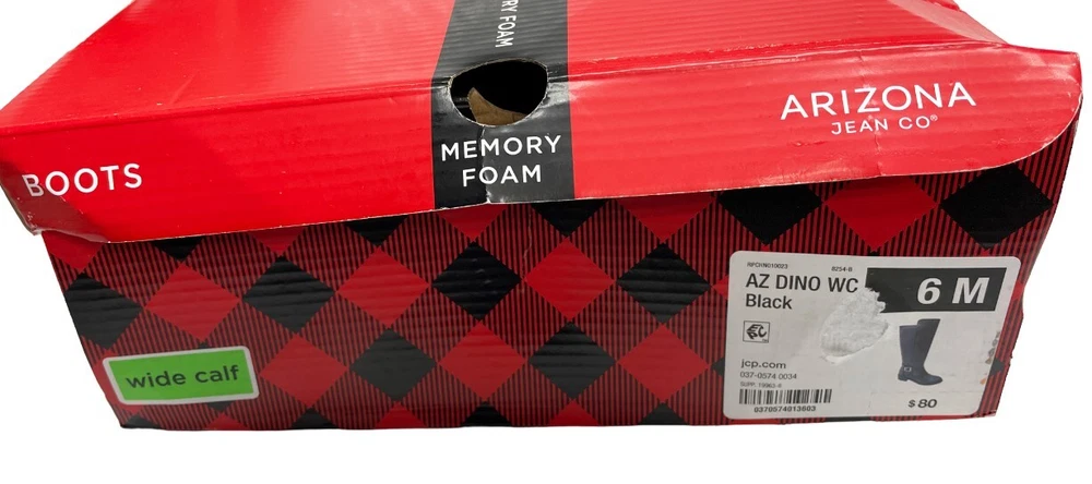 Arizona Dino Faux Leather Black Tall Wide Calf Riding Boots Women's 6 M NEW
