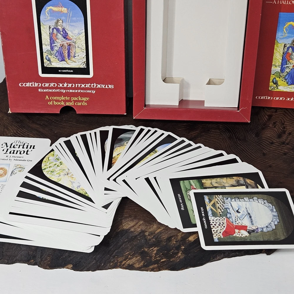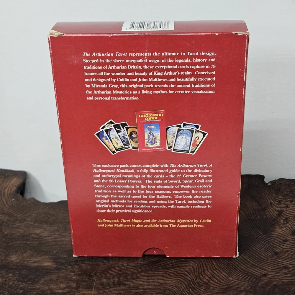The Arthurian Tarot – A Complete Set Created by Caitlin and John Matthews and beautifully illustrated by Miranda Gray, this full tarot package immerses readers in the myth and magic of King Arthur’s realm. 🔸 Includes: Full 78-card tarot deck (complete and clean) “The Arthurian Tarot: A Hallowquest Handbook” – a detailed guide to each card’s meaning and use Original red box with inner tray 🔸 Condition: Cards are in excelent used condition with no bends, tears, or markings. Book is clean and intact. Box shows light shelf wear (see photos). 🔸 Features: Illustrated Major and Minor Arcana Rich Arthurian symbology Perfect for collectors, spiritual practitioners, or fans of Celtic/British myth