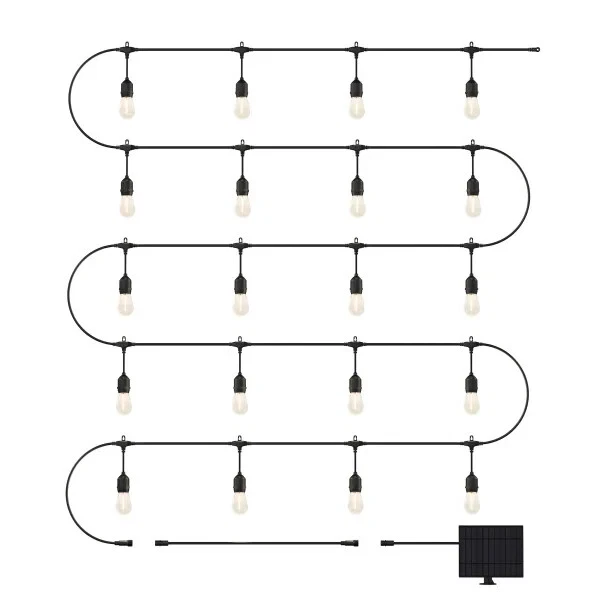 Artika Blaze 20 LED Bulb 40 ft. Outdoor Solar String Lights, USB-C Rechargeable Features: Monocrystalline Solar Panel 10 Feet Extension Cord | 20 Bulbs / 40 Feet Length Replaceable Bulbs Dusk To Dawn 4 Lighting Modes: Fade, Jump, Flash, Steady Product Details Ideal for lighting patios and fences, this set features 20 weather-resistant LED bulbs that shine year-round. Solar-powered, it can be installed anywhere with the included hardware. With a 12.8 m (42 ft) length, it can illuminate large areas using any of its 4 lighting modes. The 3 m (10 ft) extension cord allows the solar panel to be placed in the sunniest spot of your yard. It mounts on a wall (with screws), in the ground (with a stake), or on a panel (with its mounting clip). It can also be recharged via USB-C. Features: 20 LED bulbs - S14 String light 12,8m / 42ft + extension cable of 3m / 10ft USB-C cable (rechargeable option) Includes 22 cup hooks, 22 zip ties, 22 retaining screws 3 options for solar panel installation: screws, mount clamp and ground stake Operating temperature: -18°C / -0.4°F to 40°C / 104°F Weatherproof Easy installation Bulb type: LED Base type: E26 Bulb shape: S14 Colour/Bulb: 2700K Brightness (lumens/bulb): 15 lumens Power/bulb: 0.1 watts Includes: (1) string light (20) LED bulbs (1) Monocrystalline solar panel (1) USB-C Cable (1) Extension Cable (1) Instruction manual Specifications: Dimensions: 503.5" L × 1.77" W × 8.07" H Weight: 4.85lbs