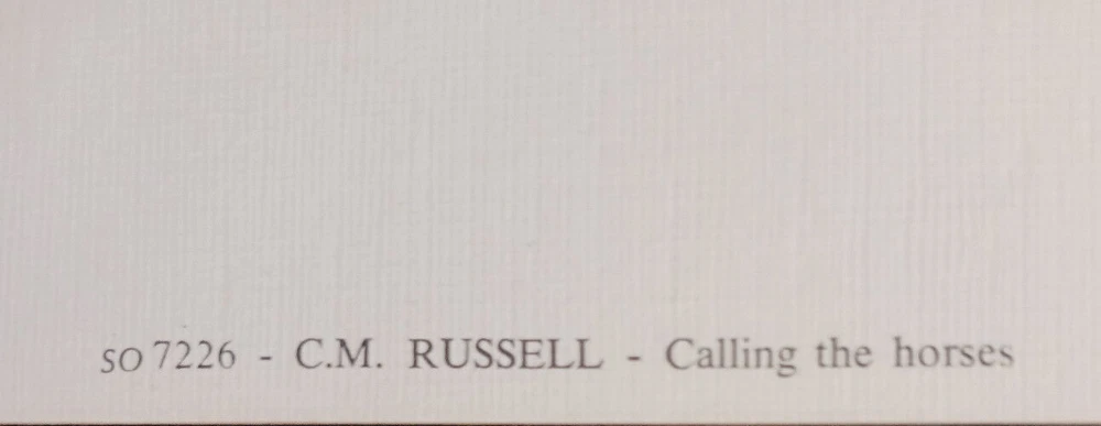 This Art Work Is From The Estate Of Hugh LaBere One Of The First Showroom Owners At The Denver Merchandise Mart C M Russell Calling The Horses Open Edition Print 14"x20" Is From Artist Charlie Russell This Was Just One Of The Many Lines My Step Dad Represented He Knew Many Of The Artists Personally And These Are From His Personal Collection That He Wanted To Open An Art Gallery With . My Stepdad Hugh Earned The Title" The Living Legend" You Are Much Missed! COWBOY UP, Love Your Daughter Sheila. Thank You For Looking ! Or Buying ! Print Size 13"3/4 H x 19"1/2 W Art Size 81/2 h x 113/4 w I Will Ship Flat