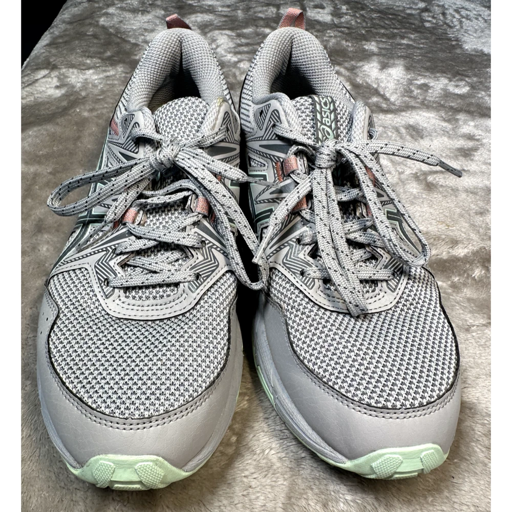 Asics Gel Venture 8 Gray Mint Green Running Shoes Athletic Sneakers Womens 7.5 Excellent condition - see pictures for wear Orders placed before 3pm PT Monday through Friday will ship the same day excluding holidays. Orders placed on holidays, weekends, or after 3pm will ship the next business day. Feel free to ask any questions before buying, we want you to be happy with your purchase. Smoke-free environment