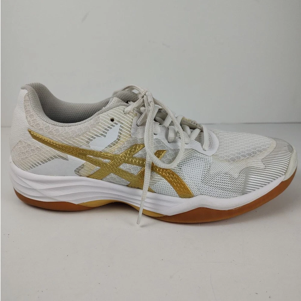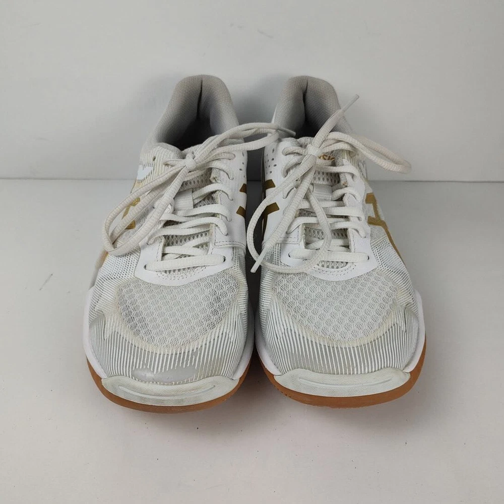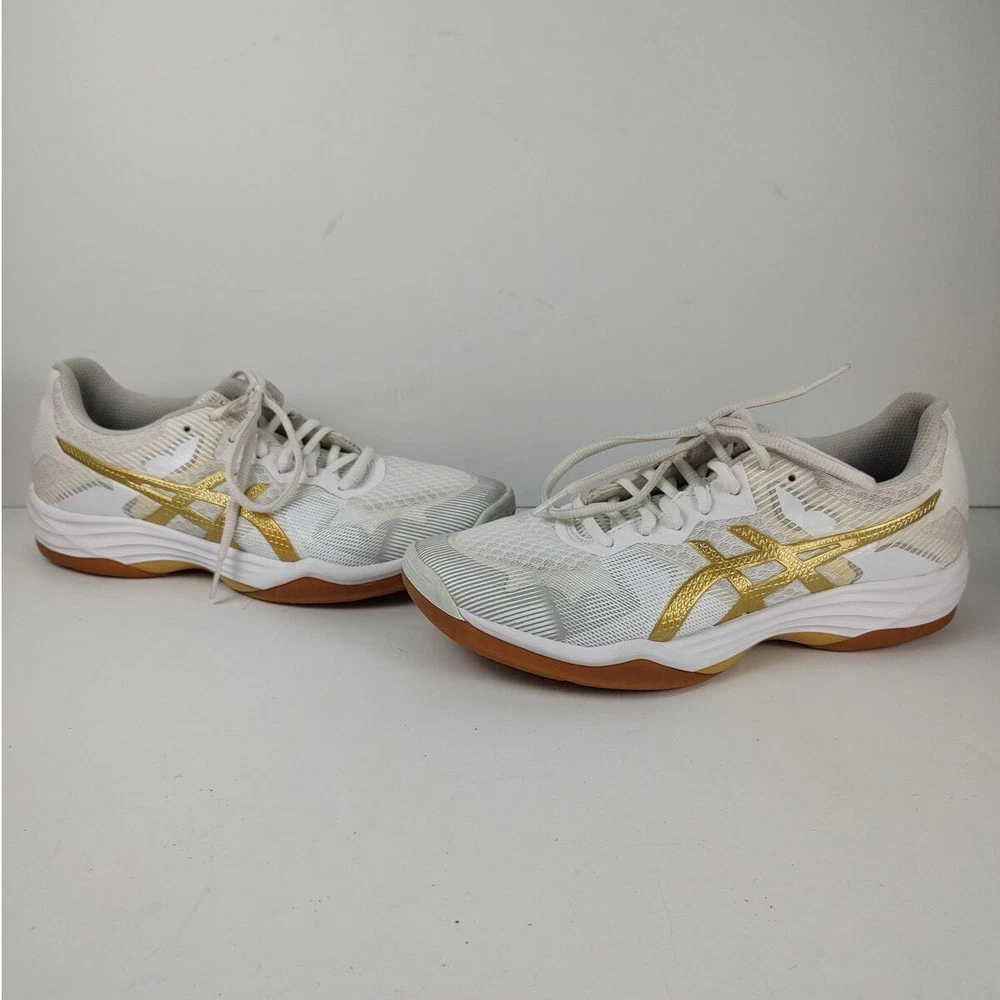 Asics Volleyball Athleticwear Streetwear Shoes Women's Size 8 Gel-Tactic 2 White and gold asics volleyball shoes, womens size 8. Theyre in great condition, no holes or stains. Has spots of wearing on the toe box (see picture 3) Theyve been thoroughly cleaned before listing Please reference photos before purchasing