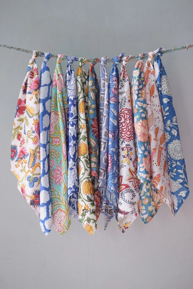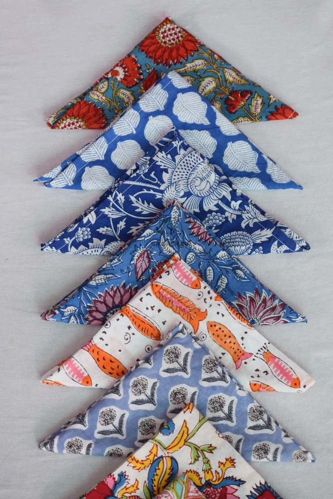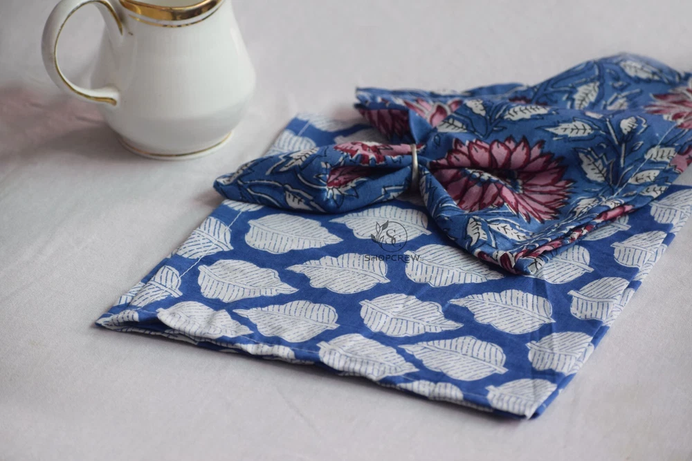It's time to stop using paper napkins and make the switch to cloth! 100% Cotton Cloth With Hand Block Print Napkins Set ( It's Mix Wholesale Lot So Every Piece And Design Are Different ) We Upgraded Our Fabric Quality To 60x60 Cotton Best For Napkins Size:- 8x8 Inches ( 20 x 20 Cm ) 10x10 Inches ( 25 x 25 Cm ) 12x12 Inches ( 30 x 30 Cm ) 14x14 Inches ( 35 x 35 Cm ) 16x16 Inches ( 40 x 40 Cm ) 18x18 Inches ( 45 x 45 Cm ) 20x20 Inches ( 50 x 50 Cm ) Care Cold wash on gentle cycle with mild soap. Wash separately. Iron on medium/warm setting on reverse. Do not bleach, dry clean or tumble dry. They are soft, durable and become softer after each wash. Dress up your dining table with these block-printed napkins from India. This beautifully crafted cotton tableware is perfect for adding a touch of colour to your table and this mix and match style makes a bold statement! Your table setting will be more eco-friendly too as these napkins are washable and reusable. Beautiful napkins made for everyday dining. This beautiful floral-patterned napkins were hand-made by local makers in India using traditional techniques. The product is a hand-printed textile so there will be naturally occurring dye and pattern variations throughout, making each piece unique.
