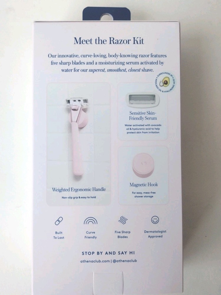 Experience the elegance of the Athena Club Razor, specifically designed for women who seek a combination of comfort and style. The kit comes with two cartridges, each containing five precision blades that glide effortlessly over your legs, ensuring a close and comfortable shave every time. Crafted with a durable weighted ergonomic handle, this cartridge razor is not only practical but also aesthetically pleasing with its lovely pink color. The razor also features a convenient magnetic hook for easy storage. Proudly manufactured in the United States, the Athena Club Razor is a testament to both quality and modern design.