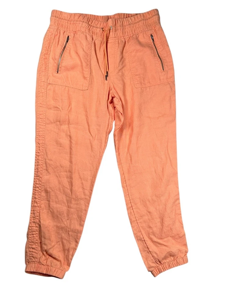 Athleta Cabo 100% Linen Joggers Womens Size 12 Orange Athleisure Casual Travel Great Preowned Condition Please refer to photos for size measurements / reach out with any questions or if you are wanting additional photos!