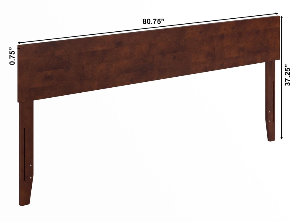 Experience a fresh take on bedroom elegance with the Orlando Solid Wood Panel Headboard. This headboard boasts a modern low wood panel design, effortlessly capturing the essence of contemporary sophistication while providing a clean and refined backdrop to enhance any sleep space. Designed for easy attachment to most standard metal bed frames supporting both a mattress and foundation, the Orlando ensures an integrated look with minimal effort on your part. Choose from a range of stunning finishes, including Espresso, White, Walnut, Grey, and Light Toffee, to perfectly complement your existing bedroom decor. Stay organized and connected with the attachable surface mount turbocharger, equipped with 2 USB ports for the convenience of keeping your devices charged and within arm's reach. Available in Twin, Full, Queen, and King sizes, the Orlando Headboard is the ideal addition to elevate your sleeping space to new heights of style and functionality. MODERN DESIGN: A low solid wood panel headboard offers a clean and refined backdrop ADJUSTABLE HEADBOARD: Features 2 height options to accommodate a range of mattress heights; PERFECT FIT: Crafted for use with the majority of metal bed frames that accommodate a mattress and foundation CRAFTED FOR A LIFETIME: The Orlando headboard is meticulously constructed from solid hardwood, ensuring lasting strength and durability CHARGING STATION: Includes Surface Mount Turbo Charger, 6-foot cord, ETL listed, 18GA wire, 2 USB Ports .5V/3.5A EASY ASSEMBLY: All parts, tools, and instructions conveniently delivered in one simple package; ASSEMBLED DIMENSIONS: (Tall Height) D:.75” x W:80.75” x H:37.25” (Short Height) D:.75” x W:80.75” x H:33.5”