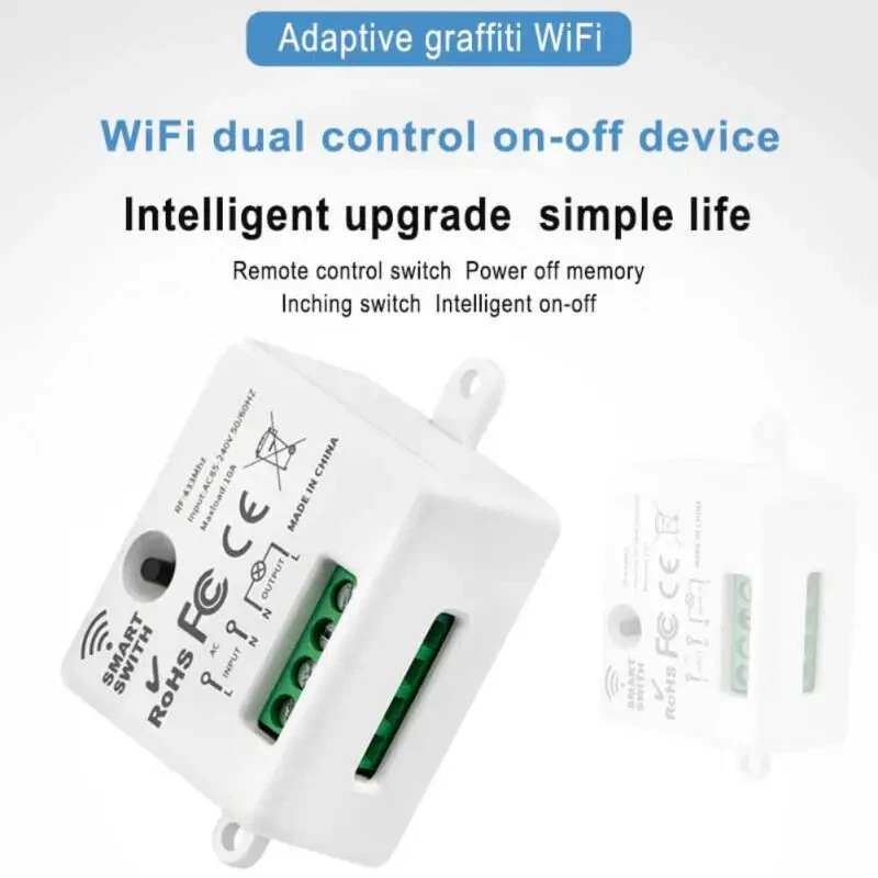 Aubess Smart Switch RF/RF433 + WiFi Dual Control Tuya Single Wire Intelligent Switch AC 220V On-off Device Smart Switches Description: Shell material : ABS colour : white Model: RF, RF + WiFi Specifications: High quality materials for safe use Small size, easy to use Exquisite and durable A single RF model cannot link WiFi and cannot be controlled regularly. RF + WiFi can be controlled regularly and linked to WiFi Package Included: 1*On-off device