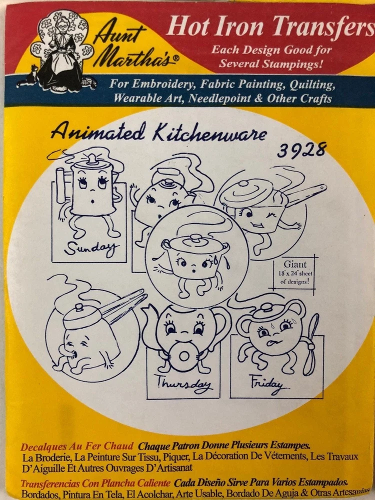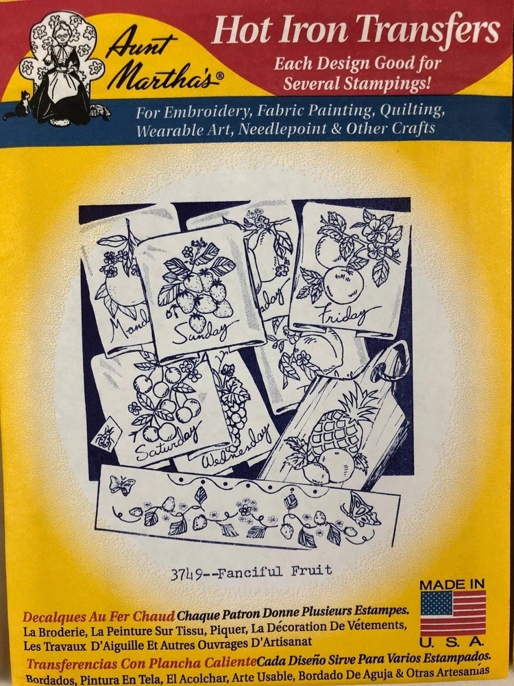 Aunt Martha's Hot Iron Transfers for Embroidery Fabric Painting Quilting Needlep