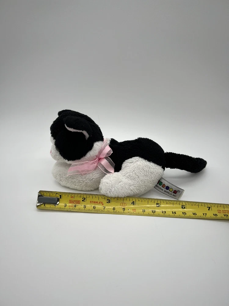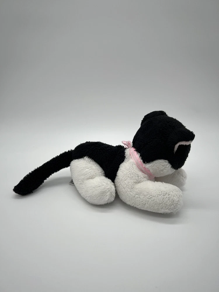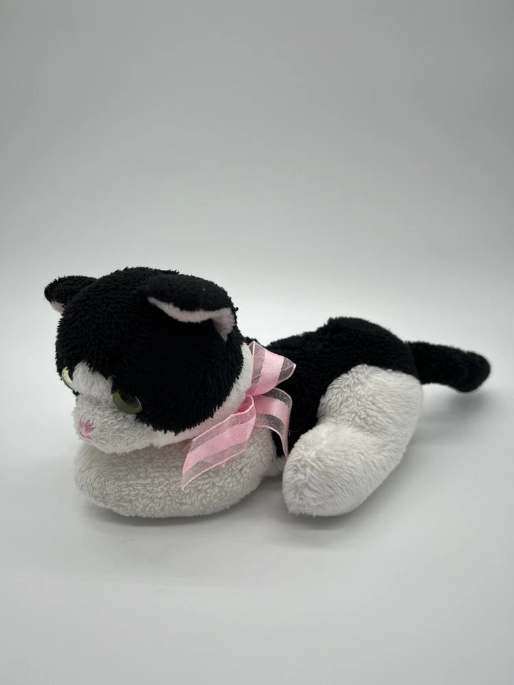 Aurora Black White Cat Green Eyes Lying Down Plush Used. Item: N19(4)