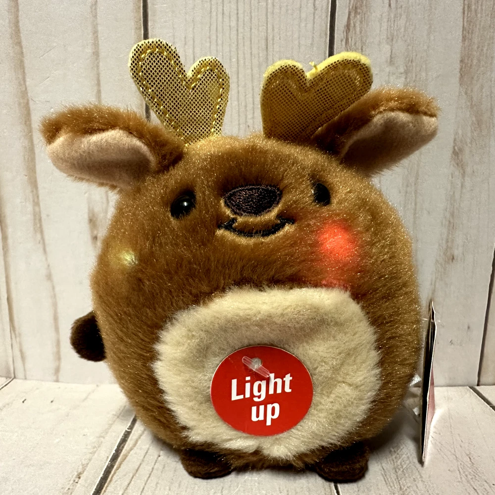 Plush is in brand new tags attached. See photos for details. Plush come from a smoke-free home and are stored in sealed bins. Items are shipped within 1 day of purchase and are properly packed for safe travel. I accept 30 day free returns on all items purchased in my store, and I am always open to offers and combined shipping. Please feel free to reach out to me for any questions! Item is a reindeer plush that lights up its cheeks when its tummy is pressed. Lights flash in multiple colors.
