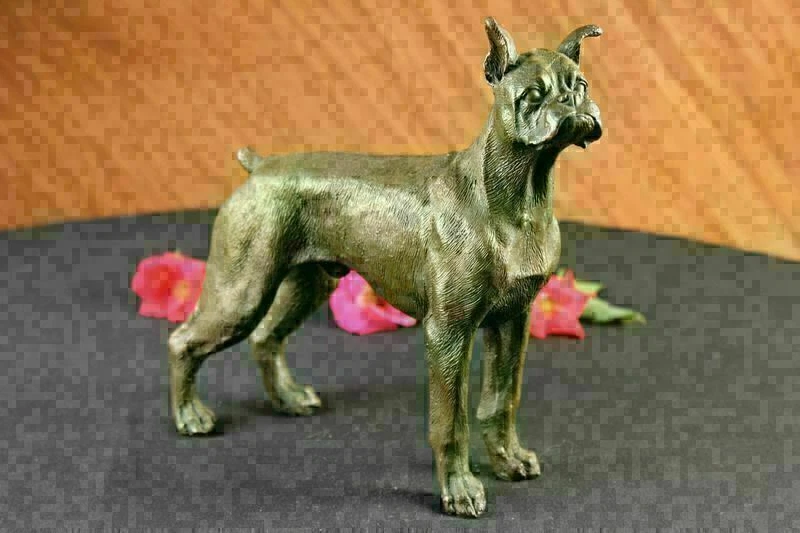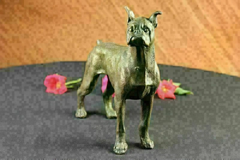 Austrian Cold Painted Bronze Boxer Dog Figure Hot Cast Animal Popular Artwork Austrian Cold Painted Bronze Boxer Dog Figure Hot Cast Animal Popular Artwork Condition : This sculpture is in a perfect condition. Bronze Dimensions: Height 7 1/2" x Width 9" Weight: 5 LBS Inventory: 19DW0642291 This lifelike bronze sculpture of an English bulldog or Boxer embodies the perfect guardian for your front door. With a stocky and powerful build, this canine stands in a wide and vigilant stance, ready to welcome you home after a long day. His large paws and well-defined muscles give him the appearance of an immovable and formidable presence. Despite his imposing figure, this charming sculpture captures the essence of a loyal and lovable pet. The intricate details in his face, expressive eyes, and floppy cheeks make him irresistibly cute. His presence exudes both strength and warmth, showcasing the artist's exceptional craftsmanship. Created by the artist Moigniez, this bronze masterpiece not only serves as a symbol of protection but also as a timeless piece of art. Whether displayed at your front door or in your living space, this sculpture is a testament to the enduring bond between humans and their four-legged companions. Bring home this faithful guardian today and add a touch of canine charm to your surroundings. Boxer Dog Bronze Metal Statue Sculpture Collectible Decor Signed Art 8\" x 9\" DW-064 Video will open in a new window Using the eBay App? Paste link into a browser window: [isdntekvideo] Shipping Terms : Most of our items are shipped via USPS (United States Postal Service) mail or UPS. Most orders are shipped within 24-48 hours of purchase. Please be aware that not all items are available for USPS shipping due to size and weight. We do ship to Hawaii, Alaska, Canada, Puerto Rico, APO/AE, and U.S. Virgin Islands, however, an additional charge may be required. Please contact us before making any purchases in these areas. For Non-USA customers, you may be responsible for all duty, tax, brokerage fees that may be due upon delivery (shipping costs cover freight charges only). We also ship internationally. Please refer to the "Shipping and Handling" chart for the rates for each area. Payment : We accept just about any form of payment. PayPal, Master Card, Visa or American Express credit cards. Money orders, cashiers checks, and even personal or business checks. For governmental institutions, we will also accept a purchase order. Please understand that for personal or business checks we have to wait for the check to clear (usually 7 days) before shipping. Condition : New Detailed Hand Crafted Hot Cast Bronze Satisfaction Guaranteed. This is Stock Photo, Slight Color Variation!! Listing and template services provided by inkFrog