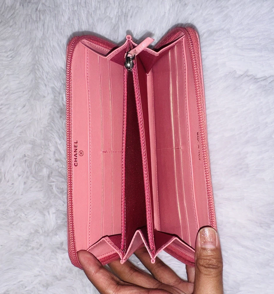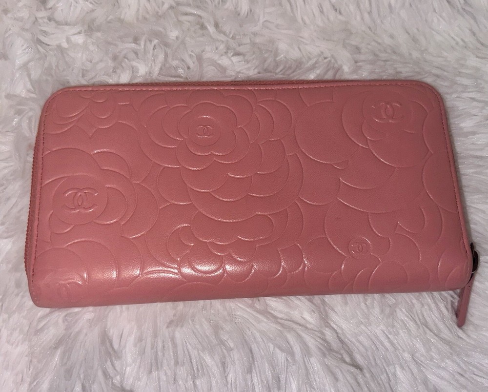Authentic CHANEL Camellia Pink Lambskin Long Wallet