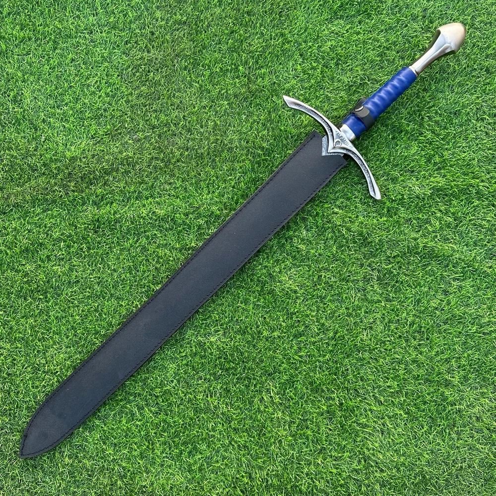 EXCLUSIVE HANDCRAFTED Damascus Steel Blade: A Legendary Sword for the Modern Warrior, Medieval Sword Swords Battle Ready, Hand Forged Sword, Damascus Sword, Long Sword, Viking Sword, Sword, Wedding Gift, With sheath Product Details: Overall Length: Approximately 35.0"inches (Approx.) Blade Material: Genuine Damascus Steel Blade Hardness: 54-58 HRC Handle Material: Leather Wrapped with handmade steel guard and but cap. Size Verification: To help you easily determine the size, we've included images with a scale for precise dimension reference. Thank you for your understanding. We appreciate your consideration. Included Accessories: Sheath -excellent husband wife gift -Wedding gift -Father's Day gift -Mother's Day gift -Birthday Gift -Groomsmen gift -Christmas gift -Luxury Gifts For Men -Anniversary gift for husband -Thanksgiving Gift For International Customers: We kindly advise our international customers to familiarize themselves with their country's regulations prior to making a purchase. If customs in your region request customs duties, please be prepared to cover these costs. Regrettably, we cannot assume responsibility, nor issue refunds in such cases. Our Damascus Steel Creation Process: At our workshop, we take immense pride in crafting authentic Damascus steel knives that surpass mere acid etching. Here's an overview of our Damascus steel-making process: 1. Material Selection: We meticulously combine 1095HC and 15N20 nickel carbon steel for our blades. 2. Layering: The chosen steels undergo repeated heating and folding to achieve a remarkable 384 layers. 3. Acid Burn: Following the layering process, the blade is treated with acid, revealing the brilliant nickel shine and a dark gray hue in the high carbon steel, thereby showcasing the stunning Damascus patterns. 4. Blade Finishing: Concurrently, we expertly sharpen the blade's edge, transforming the acid-treated edge into a striking satin finish. Our unwavering commitment to preserving the authenticity and craftsmanship of Damascus steel ensures that each knife in our collection showcases intricate layers and delivers exceptional performance. AGE LIMITATION: Please note that we exclusively sell knives to individuals who are 18 years of age or older. Additional Details: Leather Sheath (if pictured): Rest assured, this item comes with a superior-quality, sheath. Crafted with meticulous hand-tooling and stitching, it exemplifies fine craftsmanship and is designed for exceptional durability. The added stitching ensures it withstands years of demanding use, providing reliable protection for your knife throughout its lifetime. Care and Maintenance: When necessary, use a Diamond Wet Stone or a superior sharpening tool to maintain a 20-degree blade edge. After use, clean the item with soap and water, ensure thorough drying, coat it with gun oil, and store it separately from the sheath. Leather absorbs moisture from the air and can lead to blade rust if stored improperly. Customer Feedback: Your satisfaction and feedback are of utmost importance to us. We genuinely appreciate your positive reviews! When assessing shipping time, please consider international transit. Your recognition bolsters our confidence to enhance our services. If you encounter any issues with your order or product dissatisfaction, please reach out to us first. We are committed to resolving any concerns to your satisfaction and kindly request you not to leave neutral or negative feedback. Payments & Returns: All accepted eBay payment methods are available for this purchase. Our return policy typically extends to 14 days. Shipping and Handling: We offer free shipping on all our products (In the USA) Tracking Info: The buyer will receive the tracking number via email (if available). You can also track the shipment in the "Order Details" section on eBay. USPS UPS DHL updates tracking information nightly (if available). Contact: Feel free to contact us anytime via eBay messages. We are dedicated to responding to your inquiries within 24 hours and providing the best possible assistance.