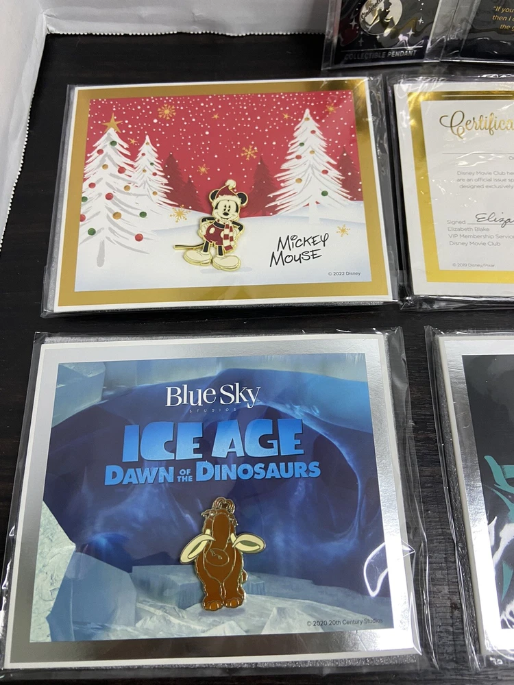 Delve into the enchanting world of Disney with this exclusive lot of 6 Disney Movie Club (DMC) pins, each piece a VIP invitation to a universe of cinematic magic. Celebrate your love for Disneyana with these collectible pins featuring beloved characters like Coco and Mickey, each one a pendant of storytelling and whimsy. Crafted for Disney enthusiasts and pin collectors alike, this set is a treasure trove from the contemporary era of Disney memorabilia. These pins are not just accessories, but badges of honor in the realm of Disney fandom, representing an intimate connection to the Pixar-themed events and experiences that have touched hearts and stirred imaginations.