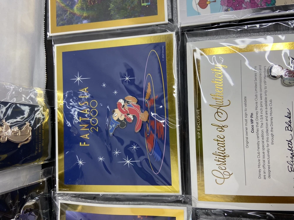 Enhance your Disney collection with this exclusive lot of 6 Disney Movie Club VIP pins, featuring beloved characters like Mickey, Buzz, and more. These pins are a must-have for any Disney enthusiast and are perfect to add to your pin trading collection or to display proudly on your jacket or backpack. Each pin showcases a unique design inspired by the magic of Disney movies and is made with high-quality materials to ensure long-lasting durability. Add a touch of Disney magic to your life with these authentic pins, ideal for fans of all ages.