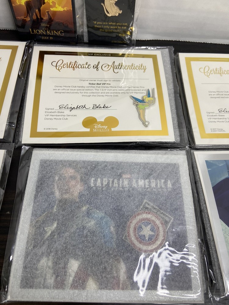 Immerse yourself in the magic of Disney with this exclusive lot of 6 Disney Movie Club (DMC) VIP pins, each accompanied by a charming pendant featuring beloved characters Groot and Buzz Lightyear. These pins are a must-have for collectors and fans, showcasing an array of vibrant designs inspired by the enchanting world of Frozen and the creativity of Pixar. Each piece in this collection stands out with its unique theme and high-quality craftsmanship, emblematic of the contemporary Disney era (1968-Now). Though the country of origin remains a mystery, the allure of these pins is undeniable, making them a prized addition to any Disneyana enthusiast's treasury.