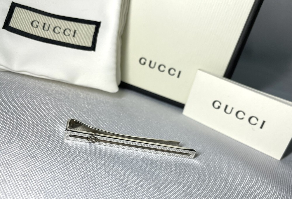 We cannot offer a substantial discount like half price, but please feel free to send us your best offer. Please feel free to send us your best offer, as we will consider it whenever possible. It depends on the payment period, We usually ship the same day or the next day. (Shipping may be delayed due to business trips, etc. In such cases, we will contact you by message. In that case, we will contact you via message.) I bought this item last year at a store in Japan. Gucci Interlocking Knot GG x Center Open Tie Pin Tie Clip Sterling Silver The latest model of Gucci! The sense of superiority that only the latest model can offer is exceptional. The casual accessory style instantly captivates the viewer! This item only From casual to dressy occasions It is useful in a wide range of fields, and can be used to upgrade the ranks of your coordination. Suitable for everything from suits to private use. Magical one-point item You can also use it as a money clip by inserting a bill. Please take advantage of this opportunity! Color silver Material SV925 sterling silver Size Approximately 6 x 0.5 cm (2.362 x 0.196 inches) Weight 8g Condition There are tarnish peculiar to silver material and minor scratches on the back part due to wear, but there is no noticeable damage or clip opening. The surface when worn is clean and in good condition and shine! Accessories: genuine box, genuine storage bag, genuine instruction manual Please take a look at our other Gucci accessories, Tiffany, Burberry, Dior, Dunhill, Versace, Saint Laurent, Bvlgari, Cartier, Montblanc, and many other luxury brands. "To ensure that our buyers can do business with us with peace of mind." We take responsibility for every item we sell. We are very proud of our buyers who have done business with us. We have received such great positive feedback. Excellent seller. Communication went well. Even though I came to the US from Japan, I was told the items arrived quickly and in time for my particular birthday. Some high quality products! Highly recommended! ++++++ Great seller! Very responsive and accurate product descriptions. Highly recommend! The seller is very responsive and reliable. The cufflinks were mint quality. I would be happy to accommodate. Oh, and her TKU to the A+++ seller who provided a beautiful PC with careful packaging and safe and surprisingly fast delivery. I was thrilled with the rich quality look and feel of the metalwork, it looks and feels like new and is perfect in every way, and the solid and clear communication with the TKU seller from start to finish made the transaction even better. We have received many comments regarding the above statement, and we are confident that you will be happy with your purchase. Of course, please be assured that all the products we sell are genuine. We sincerely look forward to doing business with you again! Translated with DeepL.com (free version)