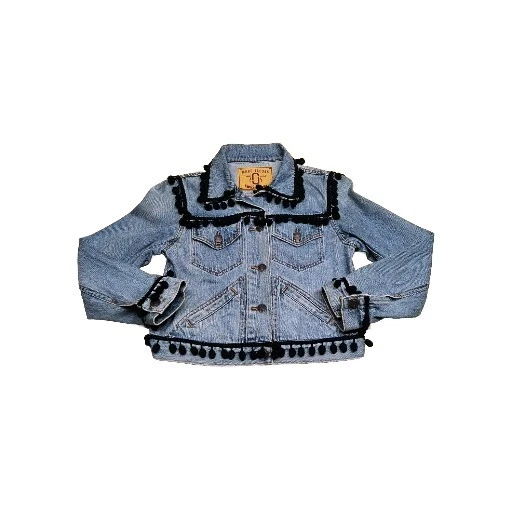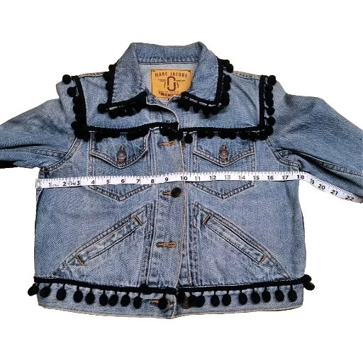 Amazing Marc Jacobs denim jacket. Embellished on all the seams with black pom pom tassels. Size small and the wash is Vintage indigo. I bought this new jacket many years ago. I literally wore it once and put it in my closet. It hasn't been out since. Pretty sure I bought this over 20 years ago. It was kept in a garment bag so it's mine and fresh and clean.