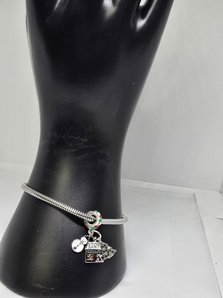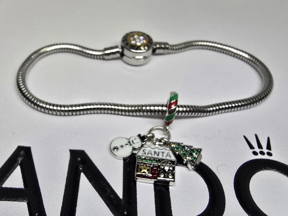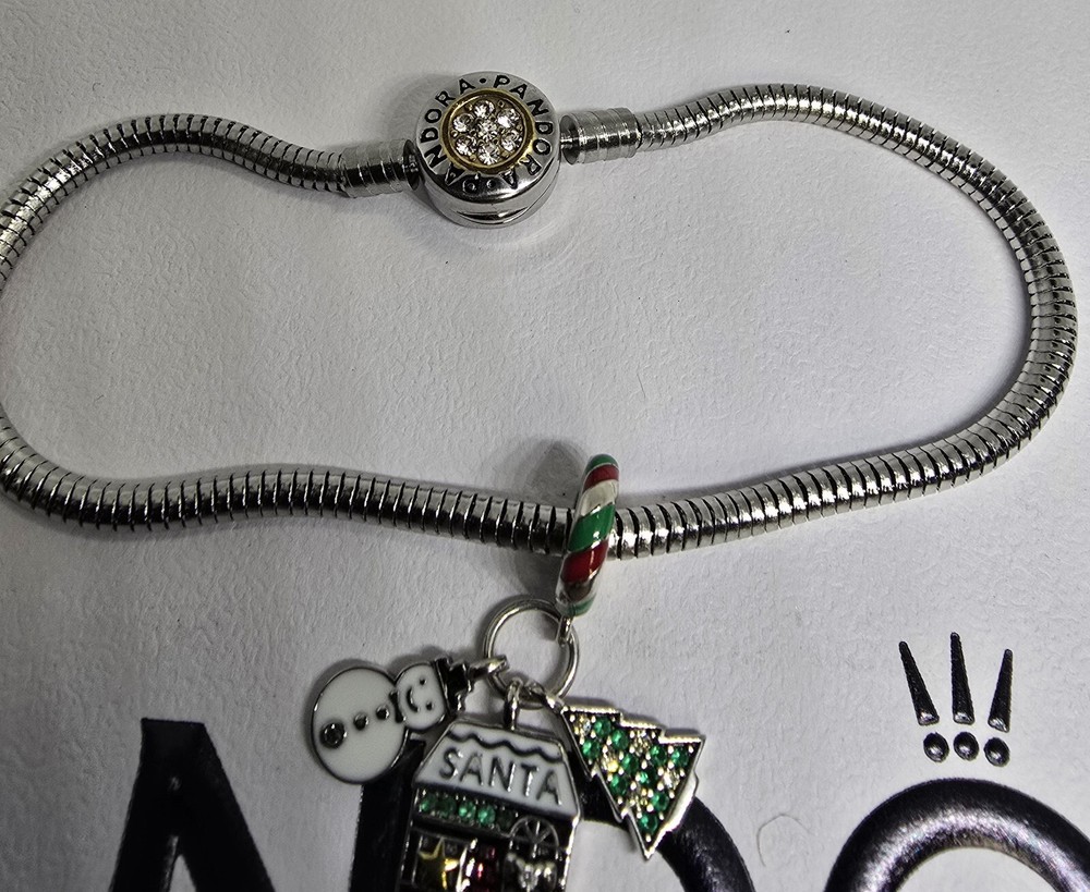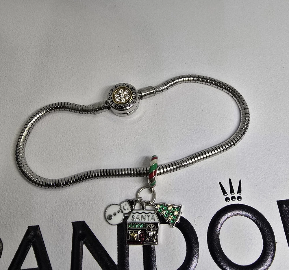 This is an authentic Pandora bracelet made of sterling silver with a heart ferris wheel love hand bag shape. The bracelet length is 7.5 inches and it features a snap closure. The main stone is a round crystal with a good cut grade and a pavé setting style. The bracelet is stackable and has a snake chain type. The charm type is a bead and the bracelet is designed with beauty, christmas, wife, angels, girlfriend themes. The bracelet is perfect for various occasions such as engagement, mother's day, graduation, anniversary, father's day, birthday, christening, confirmation/communion, and valentine's day. The bracelet is made in Thailand and is not antique, vintage, personalized, or customized.