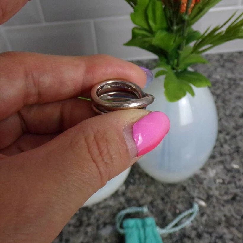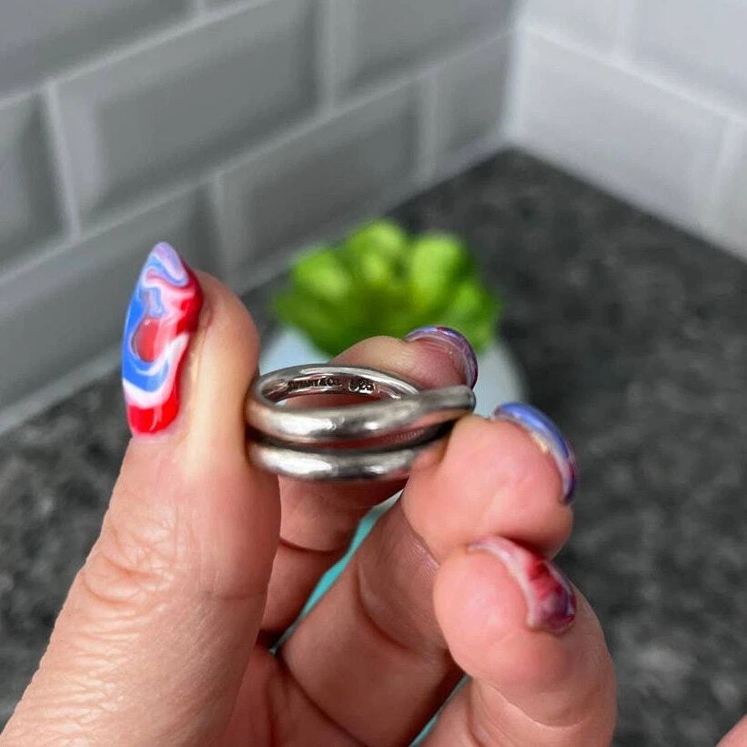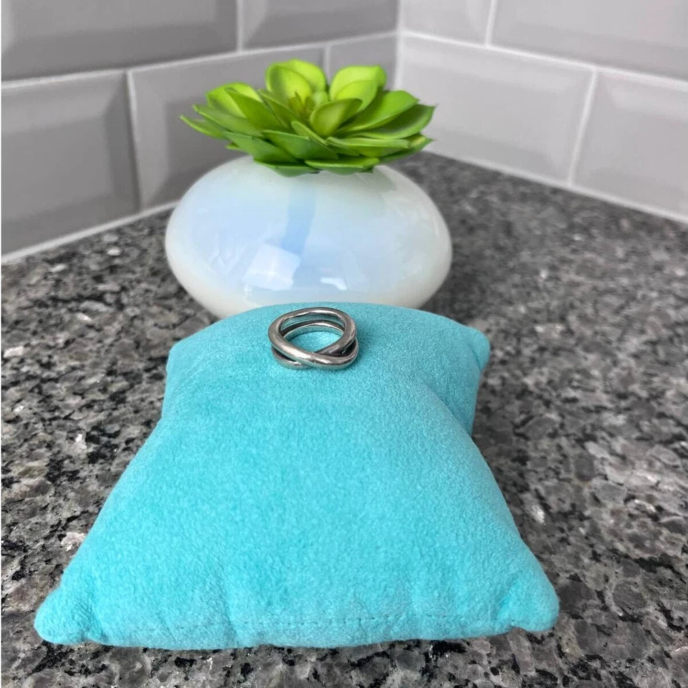 Authentic Tiffany & Co. Silver Paloma Picasso Le Cercle Crossover Ring Sterling silver --925 2 bands crossed over Ring Approximately a Sz 5 Please Note - All Measurements Were Taken By Hand And Are Approximate; Slight Variations May Occur Dust bag Pre owned Signs of wear, scratch/scuffing on hardware