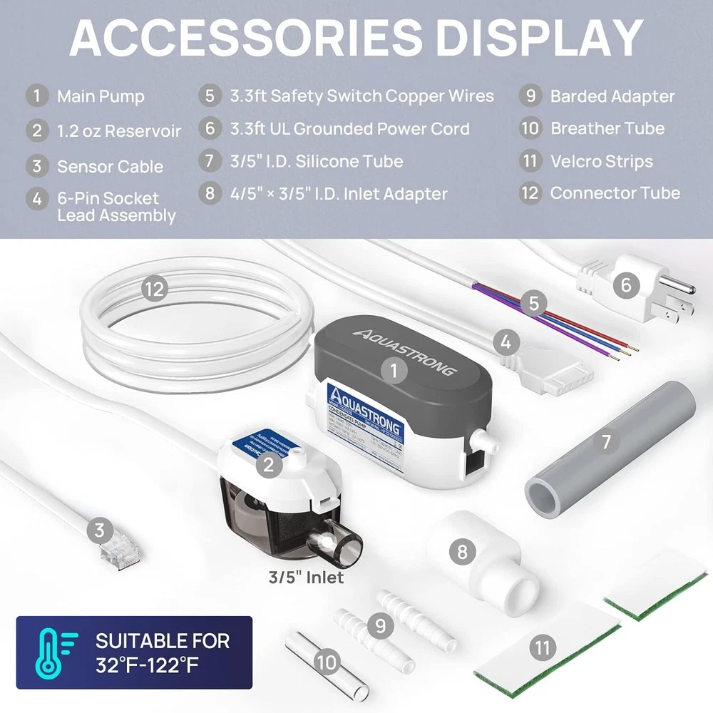 Automatic Condensate Pump for AC & Dehumidifiers, 3.3' Power Cord Safety Switch ‹ › ‹ › ‹ › ‹ › ‹ › ‹ › ‹ › ‹ › ‹ › Automatic Condensate Pump for AC & Dehumidifiers - 3.3' Power Cord with Safety Switch High Performance: Equipped with a thermally protected motor for efficient and quick draining. Ultra-silent operation at only 20 dB. Maximum flow rate of 9.6 GPH and a maximum head of 33ft. Reliable hall switch allows for auto operation and extends the service life. Ideal for removing condensate from collector pans of AC units, furnaces, and dehumidifiers. Hi-Level Safety Switch: Signal lead wires can be directly wired to HVAC appliances or alarms. Auto shut off the appliance or activate alarms in case of overflow when high water levels are detected. NC & COM for appliance connections; NO & COM for alarm connections. Easy Installation: Mini split design integrates seamlessly into line set covers, wall cassettes, or above ceilings. Features anti-vibration velcro strips for flexible installation. Removable visible tank and filter for easy observation and timely cleaning. Comes with 3/5'' O.D. inlet with silicone tube & adapters for accessible connection. 3/10'' O.D. barded outlet fits vinyl tubing from 1/4″ to 3/8'' I.D. Safe Operation: 3.3ft UL power cord with 3-prong plug ensures safety and convenience. Regular cleaning of the reservoir, float, and filter is required every six months to prevent clogging. Installation must be done with the reservoir vertically oriented and the magnet facing upward. Worry-Free: A small yet powerful condensate pump capable of handling air conditioners, dehumidifiers, condensing boilers, and furnaces effortlessly. With ’s dedicated customer service providing professional tech support at your fingertips, peace of mind is just a step away. Why Choose the Automatic Condensate Pump? Say goodbye to overflowing water reservoirs and hello to a worry-free experience! Our Automatic Condensate Pump blends high performance and innovative safety features, ensuring efficient operation in any HVAC setup. With an ultra-quiet motor, compact design, and hassle-free installation, this pump is the perfect solution for maintaining a dry and comfortable environment in your home or office. Elevate your indoor air quality and safeguard your appliances today—experience the convenience of our Automatic Condensate Pump. Shipping Free & Fast Shipping - We offer free shipping to most of the USA with a normal delivery time of 3-7 days. However, due to the current situation, additional delivery time (up to 3 weeks) may be required for some items. Alternative Carriers - We may use alternative carriers (e.g. USPS, FedEx, UPS, etc.) to ensure your package arrives safely and on time. Due to the use of multiple carriers, we are unable to provide a tracking number automatically. Handling Time - Orders are processed and shipped within 1-2 business days of receiving cleared payment. Shipping Restrictions - Shipping to Alaska, Hawaii, Puerto Rico, Guam, and other US territories may incur shipping charges or delivery restrictions. Please contact us before ordering, or your order can be refunded/cancelled. State Restrictions - There may be restrictions based on your state of purchase. For example, certain items may not be shipped to California due to state regulations. Contact for Tracking Updates - If you require tracking updates or have any concerns about the delivery of your order, please feel free to contact us, and we will be happy to assist you. Return 30-Day Hassle-Free Returns - We want you to be completely satisfied with your purchase. If you are not, you can return the item within 30 days of receiving it for a full refund or exchange. Easy Return Process - To start a return, simply contact us and we will provide you with a prepaid return shipping label and detailed instructions. Restocking Fee - There are no restocking fees for returns. However, the buyer is responsible for return shipping costs if the return is not due to a seller's error. Refund Processing Time - Refunds will be processed within 5 business days of receiving the returned item in its original condition. Payment We accept all major credit cards, PayPal, and Apple Pay for your convenience. Your payment information is secure and encrypted to ensure a safe and seamless transaction. Please complete your payment within 3 days of purchase to avoid any delays in shipping. Feedback Your feedback is extremely important to us. We strive to provide the best products and customer service possible. If you are satisfied with your purchase, please take a moment to leave us a positive review. If you have any concerns or issues with your order, please contact us before leaving negative feedback. We are committed to resolving any problems and ensuring your satisfaction. Contact Us If you have any questions or concerns, please feel free to reach out to our customer support team. You can contact us through the eBay messaging system. We are available Monday to Friday, 9:00 am to 5:00 pm EST, and we will do our best to respond to your inquiry within 24 hours. Thank you for supporting our small family business! MPN: HVAC_Condensate_Pump UPC: Not Set Model: HVAC Condensate Pump Unit Quantity: 9.6 Brand: Unbranded Type: Condensate Pump Country/Region of Manufacture: HVAC Condensate Pump Unit Type: Not Set