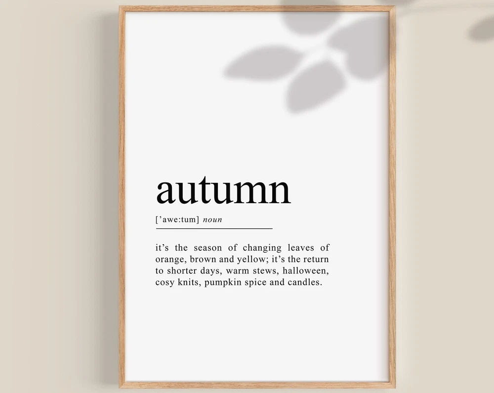 Autumn Definition Poster Fall Art Fall Wall Print Seasonal Decorations Thanksgiving Home Decor Print Yourself Material: Premium luster photo paper Print type: Inkjet printing One side printed + The finish provides the highest possible resolution and color saturation + Lasts up to 200 years in color and 400 years in black-and-white + Printed on high-quality resin-coated photo base paper medium + Posters can be hung with double-sided tape, tacks, or framed + Hand washing with a gentle cry cloth is recommended for extended durability I will hand select the best choice of paper for your chosen design to ensure top quality results for a beautiful, bright and luxurious print. All prints are sealed in cellophane slips for protection during transportation, and are shipped in a protective cardboard envelope.
