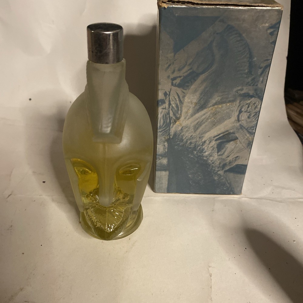 The Avon "TRIBUTE" Cologne for men is a large 6 fl oz bottle shaped like a head, featuring a Greek-inspired design with a SPARTAN character. Perfect for all occasions, this clear glass cologne comes in its original 1970s packaging, making it a unique and stylish addition to any collection. Made by Avon, this vintage piece exudes a theme of YOUNG MANHOOD, ideal for those looking for a masculine and timeless scent.