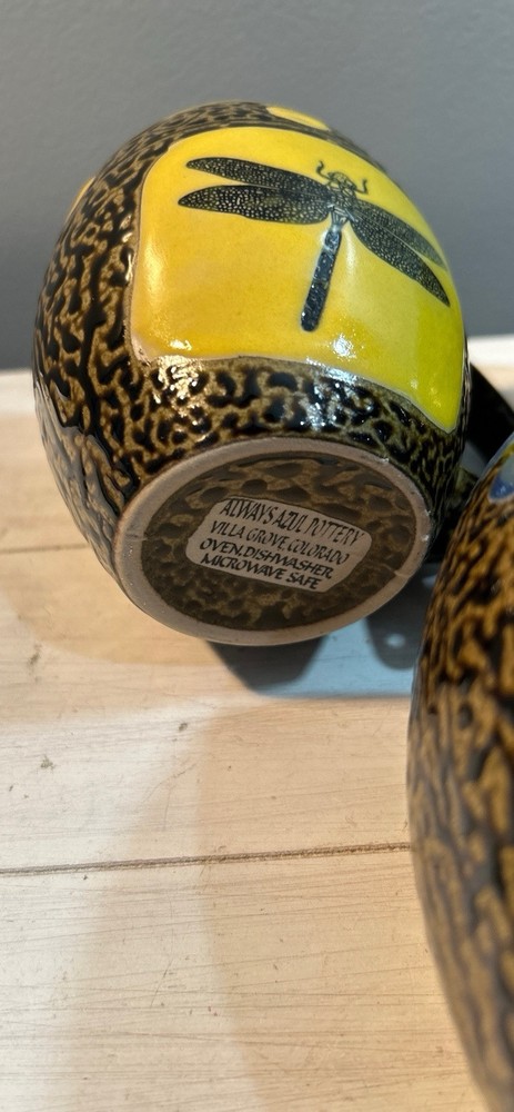 Elevate your morning routine with the Always Azul Pottery Coffee Mugs, a set of four that brings a touch of artistry to your daily coffee or tea experience. Crafted from high-quality stoneware, these mugs feature a vibrant multicolor palette and an enchanting dragonfly design . No flaws, all include spoons