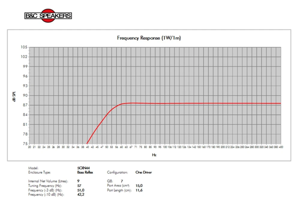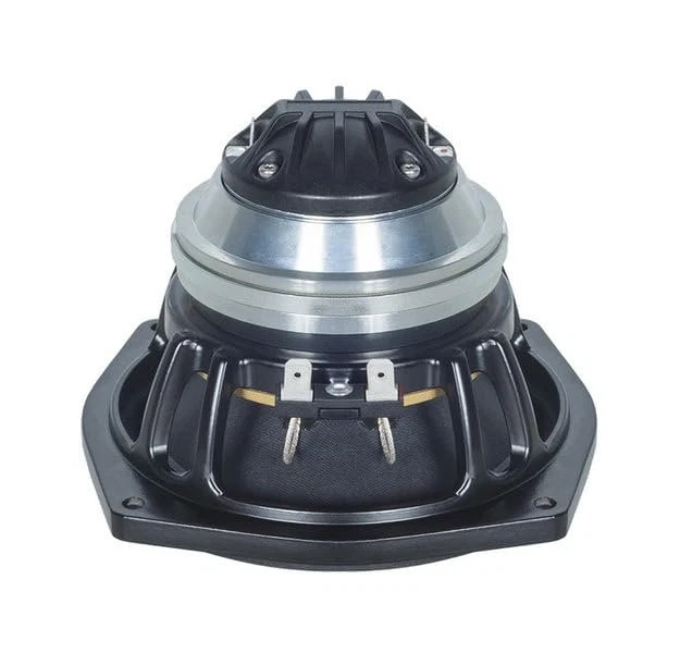 B & C Speakers 5CXN44-8 Coaxials 5-inch 8 Ohms Pro Audio Component Speaker Driver for Motorcycle Car 150 Watts RMS 300 Watts Max Neodymium Magnet HIGHLIGHTS | 300 W continuous program power capacity | 80° nominal coverage | 70 - 18000 Hz response | 86.5 dB sensitivity | Aluminium demodulating ring for very low distortion" SPECIFICATIONS : | Nominal Diameter : 127 mm (5.0 in) | Nominal Impedance : 8 Ω | Minimum Impedance LF : 6.1 Ω | Minimum Impedance HF : 7.5 Ω | Frequency Range : 70 - 18000 Hz | Dispersion Angle1 : 80 ° | Woofer Cone Treatment : WP Waterproof Front Side | Magnet Material : Neodymium Ring | " SPECIFICATIONS LF UNIT : | LF Sensitivity2 : 86.5 dB | LF Nominal Power Handling3 : 150 W | LF Continuous Power Handling4 : 300 W | LF Voice Coil Diameter : 44 mm (1.7 in) | LF Winding Material : Copper | LF Flux Density : 0.95 T | Former Material : Kapton | Winding Depth : 14.0 mm (0.55 in) | Magnetic Gap Depth : 6.0 mm (0.24 in) | " SPECIFICATIONS HF UNIT : | HF Sensitivity5 : 101.0 dB | HF Nominal Power Handling6 : 25 W | HF Continuous Power Handling7 : 50 W | HF Voice Coil Diameter : 36 mm (1.4 in) | HF Winding Material : Aluminum | HF Flux Density : 1.54 T | Diaphragm Material : HT Polymer | Recommended Crossover8 : 2.0 kHz | Inductance : 0.14 mH | " MOUNTING AND SHIPPING INFO : | Overall Diameter : 155 mm (6.1 in) | Bolt Circle Diameter : 142 mm (5.6 in) | Baffle Cutout Diameter : 122 mm (4.8 in) | Depth : 96 mm (3.78 in) | Flange and Gasket Thickness : 10 mm (0.39 in) | Net Weight : 1.2 kg (2.65 lb) | Shipping Units : 1 | Shipping Weight : 1.65 kg (3.64 lb) | Shipping Box : 255x255x150 mm (10.04x10.04x5.91 in) | "