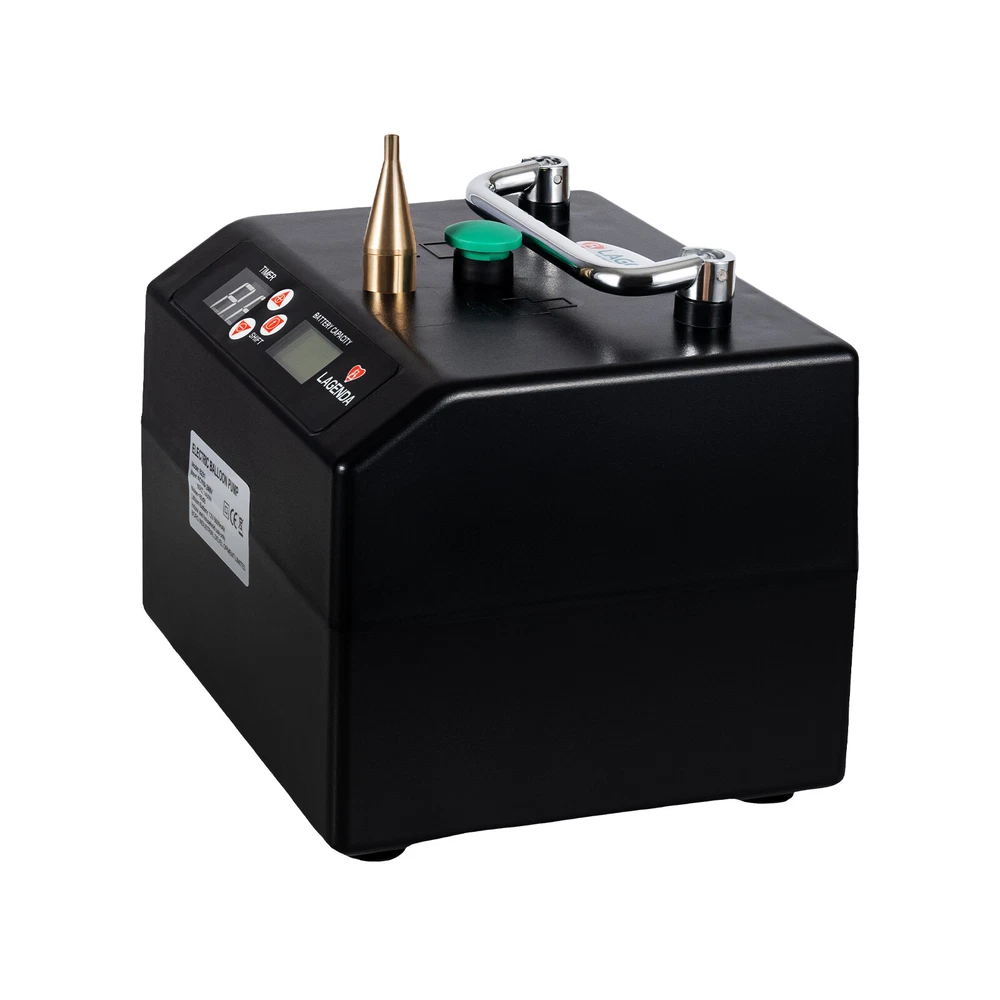 Description Colorful balloons have always been an essential decoration for parties, holidays, banquets, and other occasions, as they can always bring people into a good mood. But blowing up a large number of balloons is not an easy task. Instead of blowing them with your mouth, try this electric balloon pump. It is specifically designed for 160 long balloons and 5-inch double-set balloons, which can fill a balloon in just a few seconds. Your party will be easily filled with various dazzling balloons from now on! Package Included 1*Electric Balloon Pump 1*Bag 1*Nozzle 1*Power Cord 1*Balloon Tying Tool 1*English Manual B231 Balloon Pump Lagenda Portable Electric Balloon Inflator Air Blower Party Description Colorful balloons have always been an essential decoration for parties, holidays, banquets, and other occasions, as they can always bring people into a good mood. But blowing up a large number of balloons is not an easy task. Instead of blowing them with your mouth, try this electric balloon pump. It is specifically designed for 160 long balloons and 5-inch double-set balloons, which can fill a balloon in just a few seconds. Your party will be easily filled with various dazzling balloons from now on! Key Features High Efficiency: The internal 1400W pure copper motor provides stable and strong airflow, which can blow a balloon in just a few seconds, saving you time and energy. Two Operating Modes: This user-friendly balloon pump offers both manual and semi-automatic pumping modes, meeting the needs of both beginners and professionals. You can press the switch to start/stop inflating, or you can set the time to semi-automatic vent. Easy to Operate: The front control panel helps you better control the balloon pump. You can choose the duration in units of 1 second or 0.1 second, or press and hold the + key to zero. The counting function and clear display screen allow you to know the working status. It also supports connecting two machines for use together, inflating two balloons simultaneously! Long Endurance: The 6600mAh large-capacity battery eliminates the hassle of frequent charging! You can use it for quite a long time at a full charge, and the battery display function also allows you to monitor the usage of the battery at any time. Lightweight & Portable: It is lightweight(5.95lbs) and portable(6.3*5.9*5.1in), and with our matching backpack, you can easily carry it to the place you need to start working. The foldable handle at the top allows you to easily and firmly grasp it. Low Noise: Its operating noise does not exceed 85dB, similar to the volume of people talking outdoors. You don't have to worry about it disturbing you or the people around you. Safe & Assured: The insulated plastic shell, wide voltage design, and high-power triangular plug allow you to work without worrying about safety issues. Decoration Assistant: It can inflate hundreds of balloons in an ultra-fast time, allowing you to complete holiday or party decoration requirements in a short time, creating a cheerful and beautiful atmosphere. Details Round Corners: They can better care for your skin, avoid scratches, and improve your experience. Copper Nozzle: Copper is more wear-resistant and sturdy, which can perform well for a long time and achieve a longer service life. Heat Dissipation Holes: Efficient heat dissipation holes located on the side and bottom can quickly exhaust the hot air generated during operation, avoiding damage to the machine caused by overheating. Anti-slip Feet: The four anti-slip feet at the bottom can maintain stability and prevent scratches on your desktop. Application It is suitable for inflating 160-long balloons and 5-inch double-set balloons, making great decorations for various weddings, birthdays, baby showers, graduation ceremonies, Christmas, anniversaries, and other special celebrations. How to Use Take the air inflator from the box, and turn on the switch. Put the balloon on the copper nozzle and press the green button lightly for air inflation, then release the button to stop inflating. If the battery is out of charge, please insert the plug into the socket and turn on the switch to charge the battery, the inflator can work while charging. Please turn off the switch after finishing the air inflation. Specifications Model: B231 Material: Plastic, Copper Color: Black Shape: Rectangle Voltage: AC110-240V, 50Hz Power: 1400W Noise: <85dB Input: DC 13.8V Plug: US-Standard Assembly Required: No Number of Items: 1 Charging Time: 8 Hours Lithium Battery: 12V, 6600mAh (Included) Time Range: 0.1-9.9s Time Adjustment Unit: 1s, 0.1s Power Cord Length: 2m/6.56ft Handle Length: 11cm/4.33in Nozzle Diameter: 4.6mm Bag Size: 19.5*18.5*17cm/7.67*7.28*6.7in Gross Weight: 2.9kg/6.4lbs Net Weight: 2.7kg/5.95lbs Product Size: 16*15*13cm/6.3*5.9*5.1in Package Size: 20.5*19.5*20.5cm/8*7.67*8in Package Included 1*Electric Balloon Pump 1*Bag 1*Nozzle 1*Power Cord 1*Balloon Tying Tool 1*English Manual Notes Please carefully read the manual and strictly follow the precautions to have a better experience. Please note that this product is only suitable for 160-long balloons and 5-inch double-set balloons, and it is filled with air, so the balloon will not float. Please be careful not to use this product in damp environments or outdoors. When not in use, please cut off the power supply promptly. Please keep children away from this product. After working for a long time, it is normal for the body to get hot. Simply turn off it to cool down and continue working. Please do not use this product continuously for more than two hours or block the nozzle to avoid damage to the machine. Please do not face the nozzle during use to avoid injury. Please allow the slight color difference caused by the shooting light and 1-3cm error due to manual measurement, and make sure you do not mind before you order. CHOKING HAZARD – Children under 8 yrs. can choke or suffocate on uninflated or broken balloons. Adult supervision require