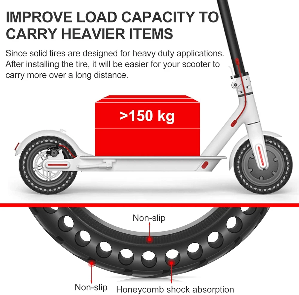 Store New Arrivals Add to Favorite View Feedback Contact BANGTING 50/75-6.1 Solid Tires for Electric Scooter, 8 1/2 X2 Tire for Gotrax Description Item model number B20201101-1 Rim Size 85 Inches Load Index 70 Speed Rating A8 Tread Depth 0.34 Inches Section Width 2 Inches Brand BANGTING Item Diameter 8.5 Inches Country of Origin China Load Capacity 330.7 Pounds Rim Width 2 Feet Item Weight 1.02 Kilograms Manufacturer Part Number B20201101-1 Tread Type Non-Directional Construction Type Radial Color Black 1PCS Seasons Year Round Model 8.5x2 inch Tire Size 8.5x2 Manufacturer BANGTING 【Compatible】- Specially designed for tires of electric scooters with 8.5 x 2, 50/75-6.1, 8 1/2 x2, including Gotrax GXL V2 / XR / APEX, Xiaomi Pro 2 / M365 / M365 Pro / 1S / 3 / 3 Lite / Essential and others. Please check the pictures to confirm your original tire size and compatibility before ordering. If your scooter's original tire size is 8.5 x 2, 50/75-6.1, 8 1/2 x2, please feel free to use our tires. 【High Quality Material】- These BANGTING electric scooter tires are made of high quality rubber material, providing excellent anti-shock performance and buffer pressure through special hollow design. The ridged surface provides excellent grip and is abrasion resistant, burst and pressure resistant, lightweight and durable. 【Best Alternative】- Say goodbye to flat tires with our solid rubber tires, which offer you a safer and more comfortable riding experience compared to traditional pneumatic tires. 【Strong and Durable】- Made of high quality natural rubber from southern Thailand, our tires are twice as hard as ordinary tires. Heat resistant, scratch resistant and durable, ensuring a stable and comfortable ride. 【Worry-Free Tires】- No inflation, no patches, no tubes and no bike pump required, for convenient and maintenance-free riding. Product Description BANGTING Honeycomb Solid Tire Replacement for Scooter Tires (Diameter 8.5" Wide 2" ) Compatible Models: Xiaomi M365 / Xiaomi M365 pro / Xiaomi 1s / Xiaomi Pro 2 / Xiaomi Essential Cecotec Bongo Serie A / Cecotec Bongo Serie A Connected Hiboy MAX V2 / Hiboy S2 Ducati Pro1 Evo / Ducati Pro1 Plus Gotrax GXL / Gotrax XR Zwheel Serie E9 Denver Sco-8535 Vivobike S2 / Vivobike S3 ...... For All Scooter Tires (Diameter 8.5" Wide 2" ) The full honeycomb tires are made of high-quality natural rubber. It is twice as thick as other products and is characterized by good penetration resistance, excellent tear resistance, scratch resistance and durability, which makes it more stable and comfortable when driving. It is more durable than other conventional inflated tires. Let yourself fall in love with this new scooter. Come! Your scooter is now ready to drive! Anti-Slip Layer Thanks to its anti-slip layer, it can be prevent the tire from slipping in snowy and rainy weather, without danger for the scooter. Anti-Drop Layer The inner layer of the tire has an anti-drop layer. Make sure the tire is tightly connected to the hub of the wheel. It's just as safe even if it's faster. Honeycombs Design Honeycombs with supports and newly increased holes can provide the better shock absorption. And the honeycomb holes can dissipate heat more quickly and serve for a longer time. How to Install? Step 1 Before installing, please soak the tire in hot water of 50-80 ℃ of 5-10 minutes making it softer and easier to install. Ensure the the tire is completely immersed please. Step 2 Cover the inside of the tire with soapy water or with a special tire lubricant (avoid using the grease lubricant, otherwise the tire will be damaged). Step 3 Place either side of the hub on the tire and step on this side (it is recommended to place another tire under this tire) Step 4 Use the professional tire levers to make the hub enter the tire. ABOUT US We offer the best prices around on high quality products. Our E-store includes media such as books, movies, music and games while offering electronics, toys, sporting apparel, clothing, tools, general home, garden items and more. SHIPPING We are always working hard to ensure your package arrives as soon as possible. Please understand that some factors like weather, high postal traffic, and the performance of shipping companies are outside of our control. We offer free shipping to the lower 48 states and ship within 5 business days of payment, usually sooner. We do not accept P.O. Boxes. Please provide a physical address. RETURNS We offer a 30-Day Return Policy on items which you are not completely satisfied with. You have the option for a full-refund or an exchange of the item. No returns are available on items shipped outside of the USA. PAYMENT We accept PayPal. CONTACT US This page content is yet to come Please ad us to your favorite seller and visit again later Thank You CUSTOMER SATISFACTION We try our very best to make sure every customer is completely satisfied. If there's a problem, message us! We're happy to help.