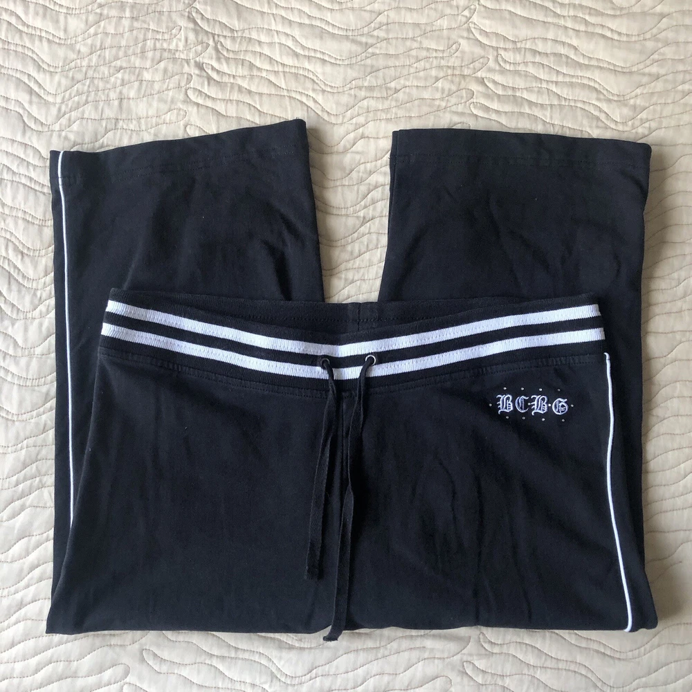 Size: XL Waist: 17 inches Rise: 10.5 inches Inseam: 18 inches Length: 28 inches Add some sparkle to your casual wear with these BCBG Y2K Rhinestone Embroidery Capri Sweatpants. The black cotton pants feature wide-leg style and an elastic waist for comfortable fit. The mid-rise pants are perfect for any occasion and can be worn with a variety of tops. The rhinestone accents on the pants add a touch of glamour to your outfit. These pants are available in XL size with a waist size of 34 inches and are suitable for regular fit. Max Azria is the brand behind these stylish pants.
