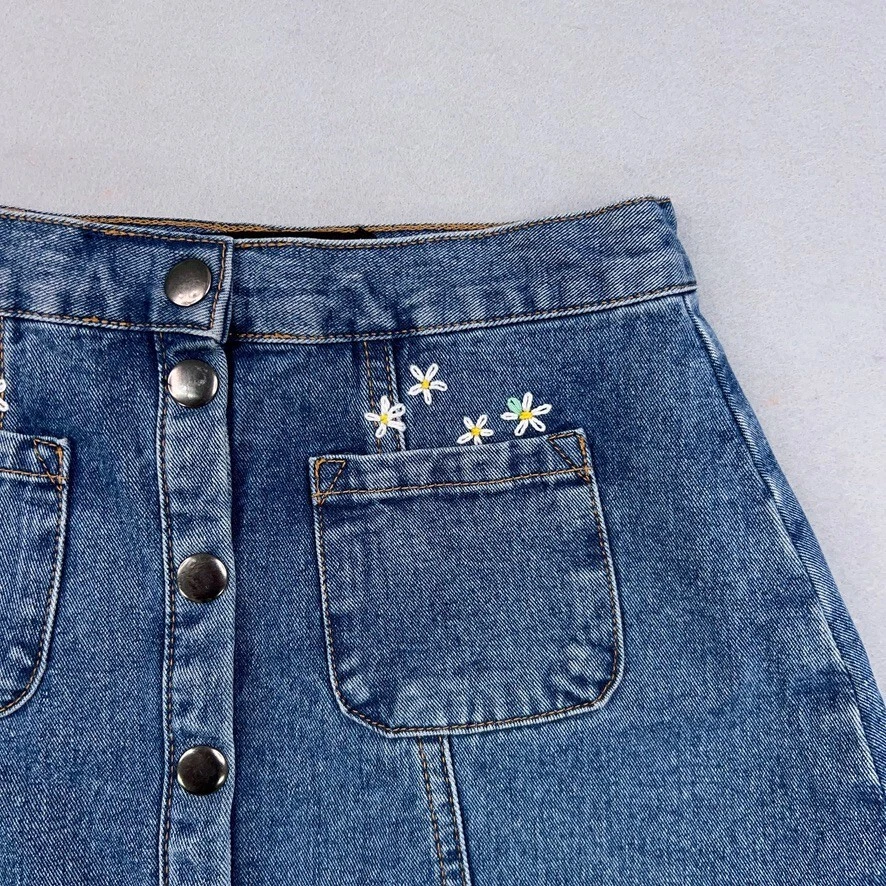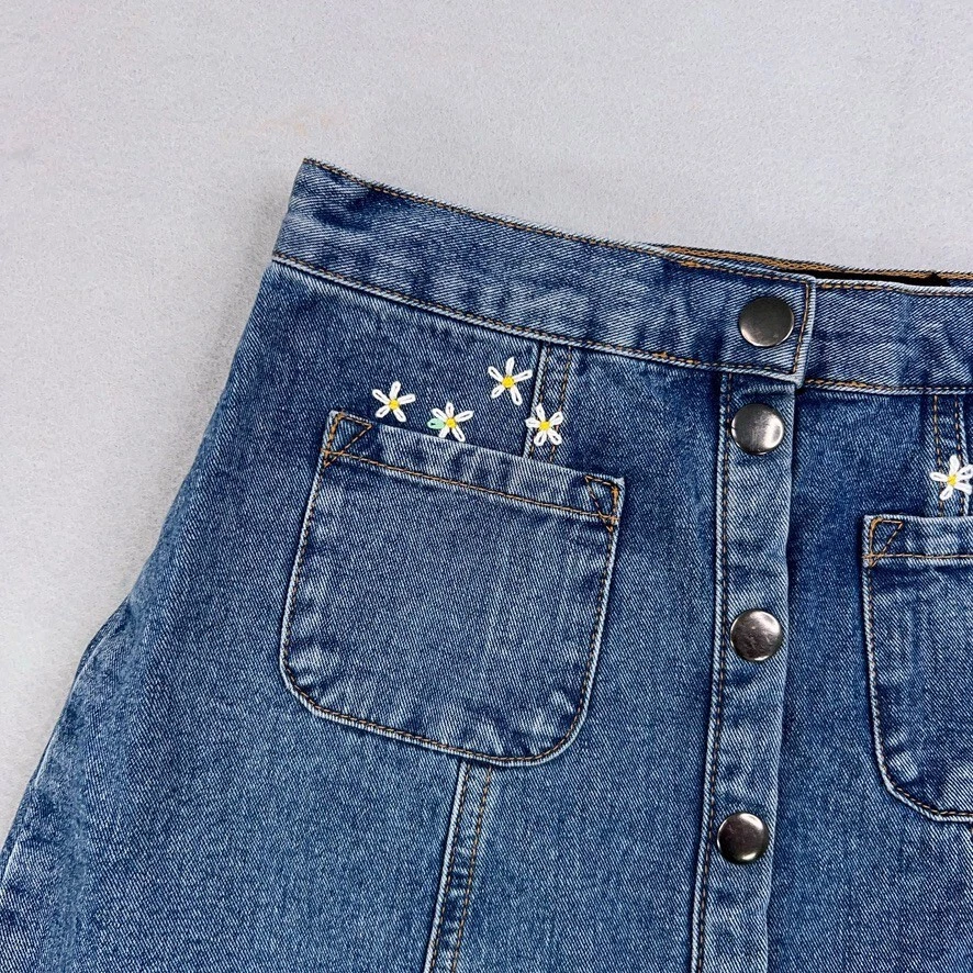 BDG Skirt Women Small Jean Denim Floral Embroidery Button Front Y2K Urban Outfit Condition: - Overall in good used condition. - No rips, stains, or tears. - Nice dainty embroidered flowers above the two front pockets. Size: - Womens small. Measurements: - Previous washings may change the sizing written on the tag. - Please refer to the photos above for all measurements. - Please compare our measurements to that of one of your favorite garments (from the back for tops only) - Please note, item measurements are approximate . All items are bagged and sealed after being photographed, then stored in a smoke free environment to ensure the item is exactly the same as when photographed. I carefully package and ship daily. Feel free to contact me with any questions. All items have been washed per eBay standards & policies.