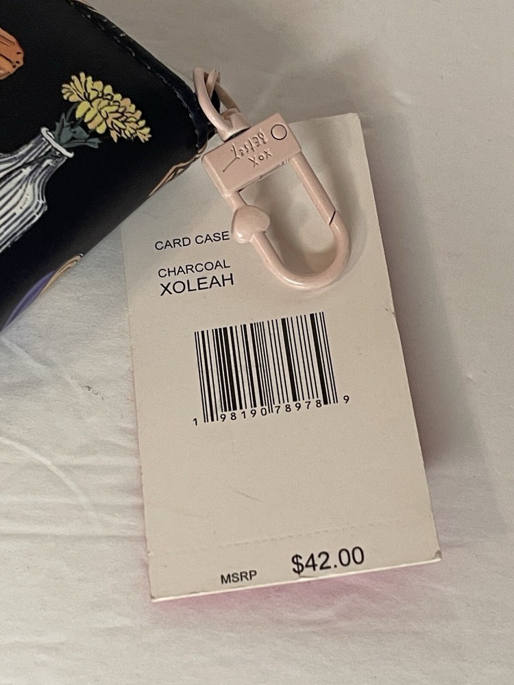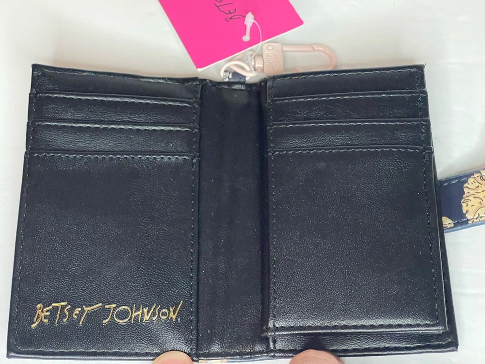 Betsey Johnson Charcoal Card Case Wallet W/ Key Ring French Desserts Print NWT