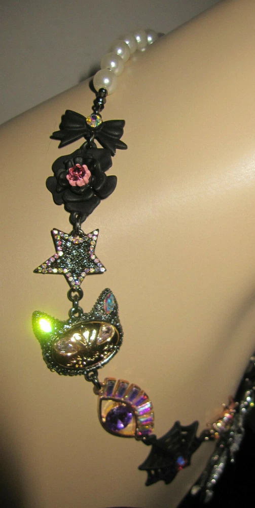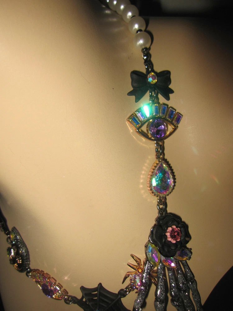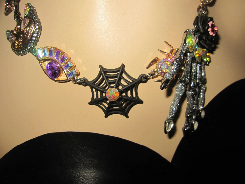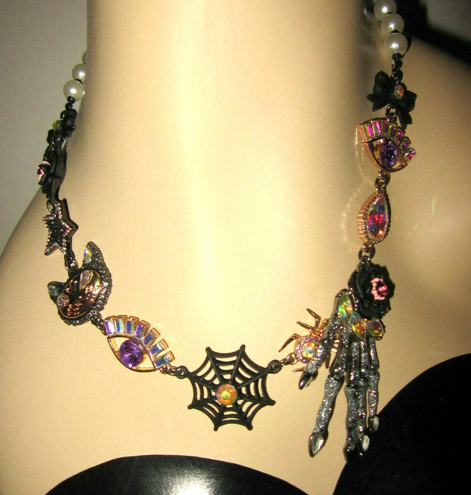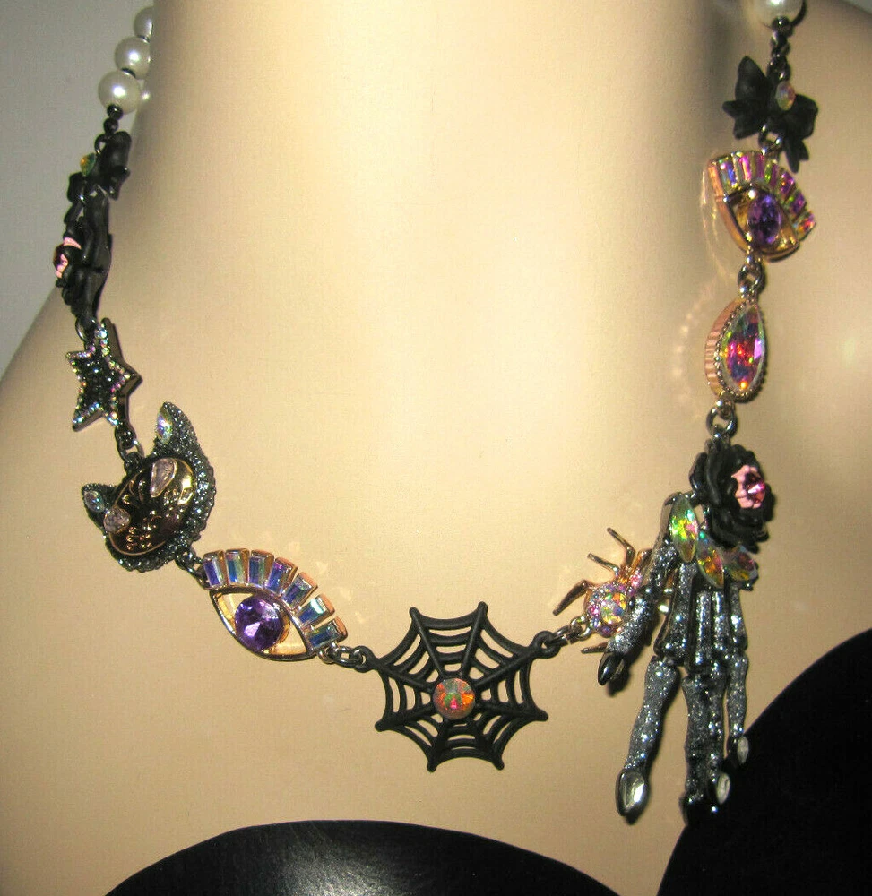 Authentic Betsey Johnson Jewelry Description: BETSEY JOHNSON HALLOWEEN CAT SPIDERWEB HAND EYE BLING NECKLACE Authentic purchased Major Department Stores. Please support my addiction. I purchase extra so I can make a little money to pay for my own Betsey Johnson Habit. I just love her jewelry it is so fun and like no other. Thank you for looking and good luck. Please do not remove the pink zip tie or any other tags if you want to return. Must be returned as received....Thank you Enjoy and please leave me some great feedback!