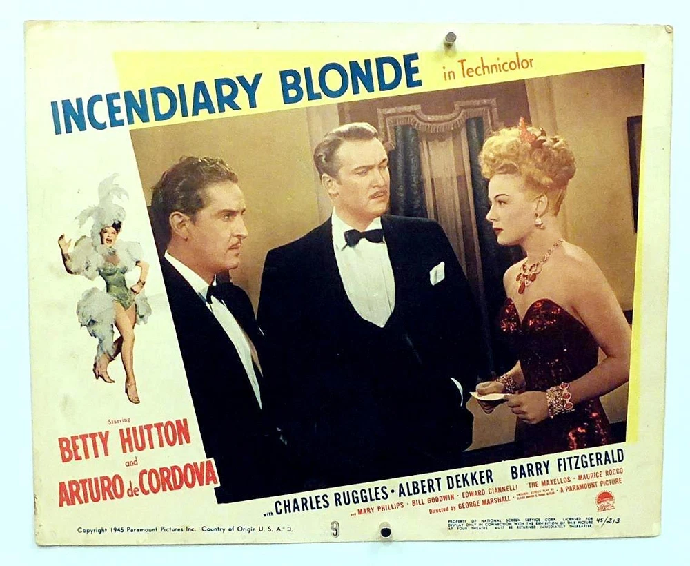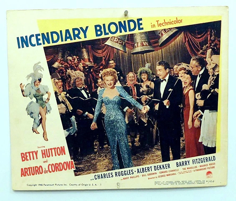 "INCENDIARY BLONDE" 1945 LOBBY CARD LOT: Stars Betty Hutton, Arturo deCordova, Barry Fitgerald, Albert Dekker - 1 LOT with 3 Different Vintage Original Movie Lobby Cards, #2, #3, #5 - Paramount Studio issued, code #45/213 - Used for Display during the Original USA Theatrical Release - Theatrically Used - Betty Hutton portrays the Famous Nightclub Singer, TEXAS GUINAN - Very Good Condition OR Better: Theatrically Used, Has Wear, flat, clean, Bright Not too Faded, Has Tack Holes (some are rusty on #5), Some Borders have some silverfish nibbling with surface paper gone, has Corner, border & edge wear, some creasing, has tears, dings, dents, bends & or wrinkles, has soiling & or smudges, stains, surface wear, could be off-register, has age yellowing - Sold As-Is - SEE FULL DETAILS & IMAGES. BETTY HUTTON 1945 INCENDIARY BLONDE MOVIE LOBBY CARD LOT (3) TEXAS GUINAN Vintg BETTY HUTTON 1945 INCENDIARY BLONDE MOVIE LOBBY CARD LOT (3) TEXAS GUINAN Vintg Click images to enlarge Description "INCENDIARY BLONDE" 1945 MOVIE LOBBY CARD LOT: Stars Betty Hutton, Arturo deCordova, Charles Ruggles, Barry Fitgerald, Albert Dekker - You are Bidding on 1 LOT with 3 Different Vintage Original Movie Lobby Cards, #2, 3 & #5 - Paramount Studio Issued , Code #45/213, Used for Display during the Original USA Theatrical Release - Nice, Used - Betty Hutton portrays the Famous Nightclub Singer, TEXAS GUINAN - Ready for Display! LC #2 : Betty Hutton, Albert Dekker (ctr) and Arturo deCordova (l) - Card has No tack holes, Has a old rubberstamp mark on back with surface paper gone. LC #3 : Betty Hutton and Arturo deCordova (r) in New Year Night Club Scene - Card has No tack holes, Has a old rubberstamp mark on back with surface paper gone. LC #5 : Betty Hutton on Stage with Show Girls - Card has 6 tack holes with 2 showing rust (ctr/top & bottom areas). SIZE: est. 11" x 14", Theatrically USED, Color Photo images, Printed on stiff cardstock Paper - All 3 LC's have a embossed stamp at bottom (ctr) - The items you see are the items you will receive - These are Vintage Items & Not Reproductions - SEE Digital Images for Condition & Defects - Please Note: Digital images can have distorted colors . Very Good Condition OR Better: Nice, Theatrically Used, Has Wear, flat, clean, Bright Not too Faded, Has Tack Holes (2 are rusty on LC #5), Some Borders have some silverfish nibbling with surface paper gone, has Corner, border & edge wear, some creasing, has tears, dings, dents, bends & or wrinkles, has soiling & or smudges, stains, has surface wear, could be off-register, has age yellowing - Sold As-Is - Stored Flat for Decades - Any Questions Gladly Answered - Suitable for Framing - A Nice Addition to Any Collection or Give it as a Gift! NOTE: These were Originally Only used for Advertising Purposes & were Not Reproductions to be Sold to the Public. Payment USA BUYERS ONLY : Accepted Methods of Payment: Paypal.com, Visa, Mastercard, Discover, American Express, Google Pay (G Pay), and Other Ebay accepted forms of Payment. All items are Shipped Boxed, Fully Insured & Packed well to prevent damage in shipping. I am sorry we do not ship worldwide at this time, Please contact me for possible exceptions. All Questions Gladly Answered. Shipping All Items are sent with the US Postal Service, via USPS GROUND ADVANTAGE (formerly 1st Class Service), Fully Insured, with Delivery Confirmation. Always "GORILLA - PROOF" Packaging ... Every item is Bagged & Shipped Boxed for Protection Against damage during shipping. About Us In Business Since 1970 ... Selling Quality Vintage Collectibles on Ebay since 1997. See My Great Feedback of Happy Customers. Buy with Confidence! Contact Us E-mail Me Anytime with Your Detailed Want-List. Let me know & I can List items on Ebay for your viewing . I have a Huge Inventory of items for sale, Circa 1900-1985 that are Not online. Get images that make Supersized seem small. Showcase your items with Auctiva's Listing Templates! THE simple solution for eBay sellers. Track Page Views With Auctiva's Counter