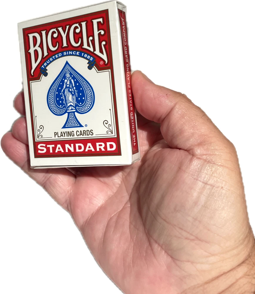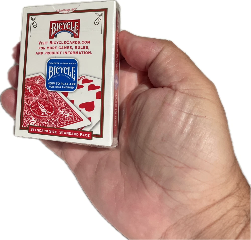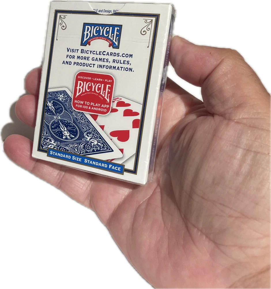 New Bicycle Double Faced Poker Deck! BEST PRICE ON EBAY! These double faced poker size decks are great for making up your own effects. SALE IS FOR ONE DECK. Double Face Gaff Deck Bicycle Factory Sealed Poker Size A regular bicycle deck with assorted face side on both sides. Most cards have different card values on each side and some have the same card value on both sides of the card and some are blank on one side. *This deck is factory sealed from the US Playing Card Company * 56 Card Deck * Box color varies WOW FREE SHIPPING! Robb. D - 5
