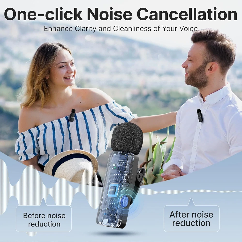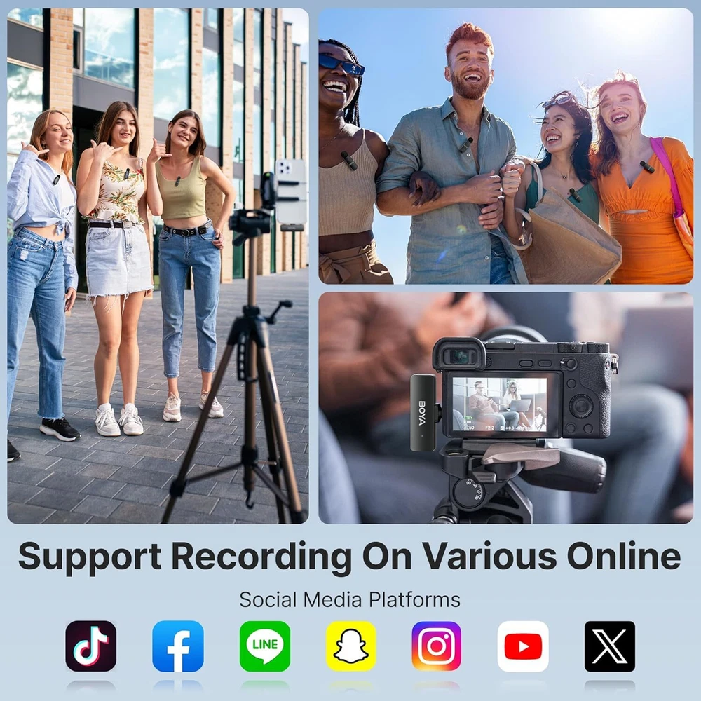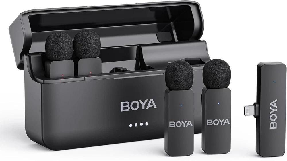 BOYA BY-V4D Wireless Lavalier Microphone for iPhone iPad with Charging Black Product Details Item dimensions L x W x H: 6.1 x 2.2 x 3.4 inches Power Source: Battery Powered Signal-to-Noise Ratio: 80 dB Number of Channels: 4 Frequency Range: 20Hz-20kHz Frequency Response: 20 KHz Manufacturer: BOYA Item Weight: 10.2 ounces Product Dimensions: 6.1 x 2.2 x 3.4 inches Item model number: BY-V4D Color Name: Black Recommended Uses For Product: Indoor/Outdoor Brand: BOYA Connectivity Technology: Wireless 2.4GHz Connector Type: Lightning Special Feature: Clip, Battery Indicator Light Compatible Devices: Laptop, Personal Computer, Tablet, Smartphone Color: Black Included Components: BY-V4D-RXU Receiver ×1, BY-V4D-Case Charging Case ×1, USB-A to USB-C Cable ×1, Foam Windscreen ×4, BY-V4D-TX Transmitter ×4 BY-V4D-RXU Receiver ×1, BY-V4D-Case Charging Case ×1, USB-A to USB-C Cable ×1, Foam Windscreen ×4, BY-V4D-TX Transmitter ×4BY-V4D-RXU Receiver ×1, BY-V4D-Case Charging Case ×1, USB-A to USB-C Cable ×1, Foam Windscreen ×4, BY-V4D-TX Transmitter ×4 See more Polar Pattern: Omnidirectional Microphone Form Factor: Lavalier Lightning Receiver NOT for iPhone 15/16:BOYA BY-V4D Receiver with MFi Certified Lightning is only compatible with iPhone 12/13/14 or previous series and also compatible with iPad with Lightning interface. If there is a Type-C interface in your device, please refer to BOYA BY-V4U with Type-C RX MFi Certified: This MFi-certified lapel microphone for iphone has been tested and approved by Apple, ensuring safety, high performance, and seamless compatibility with your iPhone or iPad.No worry about recording interruptions caused by sudden inability to connect to the device Universal Wireless System: BY-V4D wireless lavalier microphone offer freedom from wires, allowing seamless recording, shooting, and video production in various scenarios. The lapel microphone wireless has a 360°rotatable clip for easy attachment to your clothes, giving you hands-free recording capabilities. With a stable audio signal transmission range of up to 650 feet, you can capture clear recordings and shoot videos from greater distances, both indoors and outdoors Plug and Play: Enjoy a hassle-free setup with our plug-and-play wireless lavalier mics. Take your wireless lav mics from the charging case, and start your recording in one second. No need for adapters, Bluetooth matching, or application searching. Compatible with iPhone iPad Macbooks with Lightning interface Intelligent Noise Cancellation: BOYA BY-V4D microphone kit features dual noise cancellation.The wireless lapel microphone allows easy one-click control of noise cancellation on the transmitters.Meticulously equipped with an advanced foam windscreen that highly restores your voice.With a signal-to-noise ratio of 80dB and a 48kHz/16bit sample rate,it ensures high-definition, lossless audio recording. The tiny microphone reduces background noise and delivers clear,crisp audio in any environment Play without Unplugging: The BY-V4D mini wireless microphone features exclusive audio analysis technology, enabling uninterrupted playback without occupying the output line. Effortlessly play audio directly through your phone's built-in speaker without the need to unplug the receiver. Perfect for YouTube, Facebook, Live streaming, TikTok, Vlogs, Blogs, Instagram, Zoom, Podcasts, Online video tutorials, Interviews, and other video recording enthusiasts Extended 18H Battery Life: The wireless clip-on microphone provides up to 6 hours of working time when fully charged. The compact charging case can fully charge the entire set twice, with each charge taking 2 hours. With the charging case, the mobile version has a battery life of 18 hours. No more worrying about low battery situations