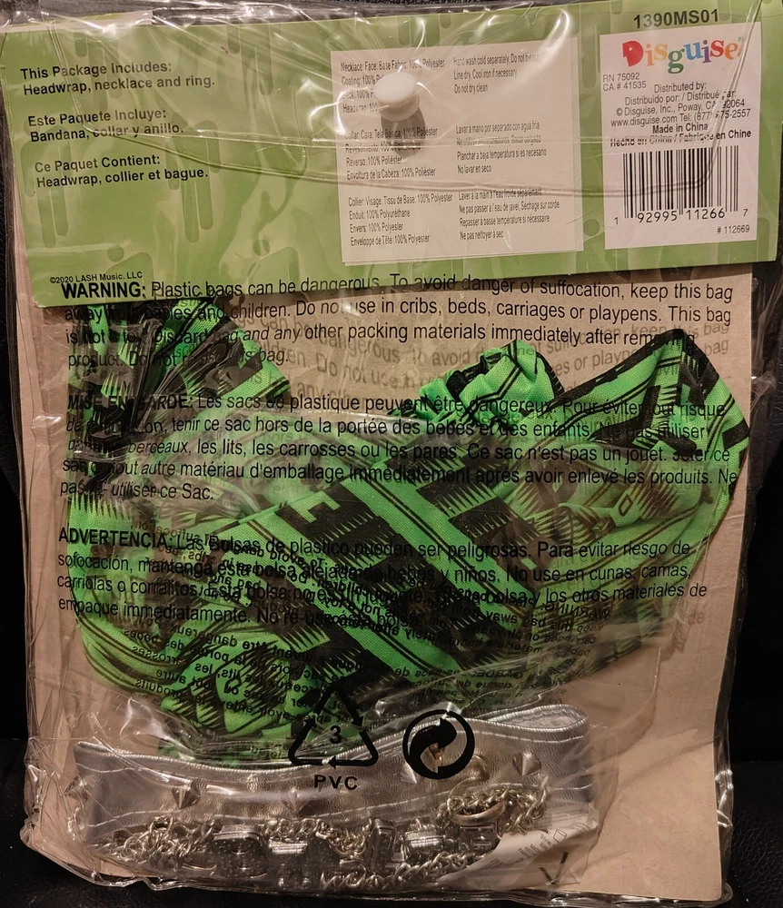 BRAND NEW HALLOWEEN COSTUME - ONLY ACCESSORY KIT BILLIE EILISH INCLUDES 3 PCS Headwrap Necklace Ring Size: One Size