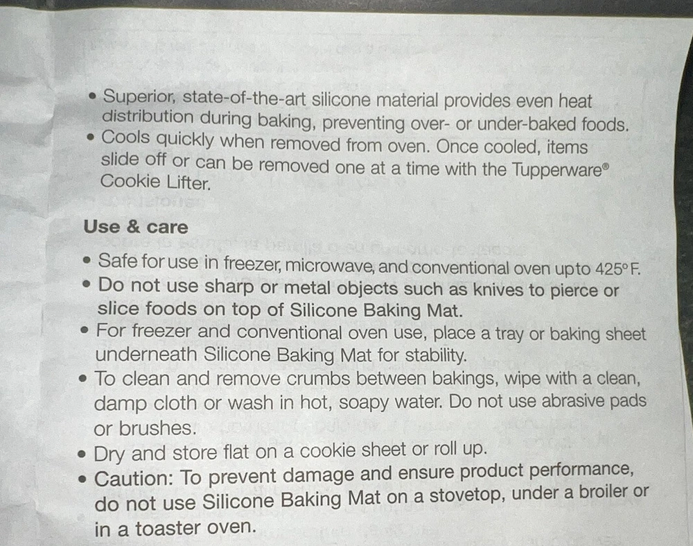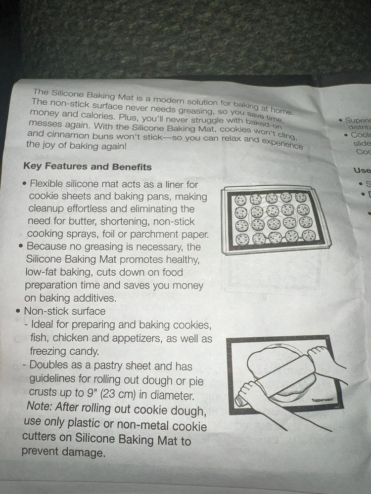 PRODUCT DESCRIPTION FOR AUCTION/STORE LISTING UP FOR BID IS: brand new unused—TUPPERWARE NEW JR. Silicone Silicon Baking SHEET junior jr. Wonder Mat 12” x 9” OLD STOCK. THIS IS THE SMALLER MAT CALLED THE JUNIOR JR. Great to use on your baking pans it allows the cookies to just slip off. I use mine for making candies and almond bark. Just spread the melted almond bark with crushed paper mints and let it harden then easily break into pieces and just wash with a cloth. Easy peasy! I love mine! This is for a BRAND NEW. You will receive the one shown in the pics. Less mess less fuss. Just pop on the center rack in your oven and cook on a baking pan. PLEASE ASK ANY QUESTIONS PRIOR TO BIDDING. THANKS! TO HELP SAVE ON SHIPPING COSTS, I WILL SHIP THIS ITEM IN A POLYBAG--IT WILL BE WRAPPED IN BUBBLE WRAP TO PROTECT IN SHIPPING. IF YOU DECIDE YOU PREFER IT TO SHIP IN A BOX, PLEASE LET ME KNOW AND I WILL BE HAPPY TO CHANGE THE METHOD AND FEES AS IT WILL COST A LITTLE MORE TO SHIP IN A BOX...THANKS.. ANY OTHER QUESTIONS, PLEASE DO NOT HESITATE TO CONTACT ME. THANKS....I DO COMBINE SHIPPING FOR MULTIPLE PURCHASES WHEN PAID ON ONE INVOICE. WAIT FOR YOUR UPDATED INVOICE --IF YOU DON'T RECEIVE IT, CONTACT ME FOR IT....DON'T PAY OR I WON'T BE ABLE TO COMBINE THE SHIPPING...THANKS>>>>> THANKS FOR SHOPPING WITH ME - GOOD LUCK...ANY QUESTIONS, PLEASE ASK ME...IF I DON'T HAVE WHAT YOU ARE LOOKING FOR, LET ME KNOW...I MAY HAVE IT AND WILL GLADLY LIST FOR YOU...THANKS!!! Visit My eBay Store: gardensido tuppnstuff Check out my other items - opens in a new window or tab! Be sure to add me to your favorites list - opens in a new window or tab! PLEASE READ THE INFO BELOW PRIOR TO BIDDING: INSURANCE & HANDING FEE DOMESTIC USA DOMESTIC USA -I CHARGE A $.75-2.00 HANDLING FEE TO COVER INK, PAPER, DELIVERY CONFIRMATION, INSURANCE AND OTHER INCIDENTALS. THESE FEES ARE NOT NEGOTIABLE. THESE FEES ARE INCLUDED IN THE SHIPPING COST TOTAL QUOTED ON THE SHIPPING CALCULATOR. I only charge a one time fee per invoice for the above regardless of how many items you purchase from me (SO LONG AS YOU WAIT FOR THE INVOICE FOR ALL ITEMS PURCHASED AND PAY ON ONE INVOICE!!!!), so the more you buy, the more you save....if you are looking for something, please ask...i may have it~!!! INSURANCE AND HANDLING FEE INTERNATIONAL I CHARGE A $4.00 HANDLING FEE TO COVER INK, PAPER, INSURANCE AND OTHER INCIDENTALS NECESSARY TO SHIP INTERNATIONALLY. NO DELIVERY CONFIRMATION ON FIRST CLASS INT'L -THESE FEES ARE NOT NEGOTIABLE AND ARE INCLUDED IN THE SHIPPING COST TOTAL. Import duties, taxes and charges are not included in the item price or shipping charges. These charges are the buyer's responsibility. These charges are normally collected by the delivering freight (shipping) company or when you pick the item up – do not confuse them for additional shipping charges. Please check with your country's customs office to determine what these additional costs will be prior to bidding/buying. International customers may experience longer shipping times due to customs-related delays. If you have any questions, please contact USPS for more info. We do not mark merchandise values below value or mark items as "gifts" - US and International government regulations prohibit such behavior. I only charge a one time fee per invoice for the above regardless of how many items you purchase from me (SO LONG AS YOU WAIT FOR THE INVOICE FOR ALL ITEMS PURCHASED AND PAY ON ONE INVOICE!!!!), so the more you buy, the more you save....if you are looking for something, please ask...i may have it~!!! PAYMENT PAYMENT IS DUE WITHIN 5 DAYS OF AUCTION END IF PAYMENT IS NOT RECEIVED BY THE 10TH DAY, AN UNPAID ITEM DISPUTE WILL BE FILED. INSURANCE DUE TO NEW EBAY POLICY AND SELLER STANDARDS, INSURANCE IS INCLUDED IN THE COST OF YOUR SHIPPING AND HANDLING. PLEASE MAKE SURE YOU CHECK YOUR ITEMS AS SOON AS YOU RECEIVE THEM. IF THERE IS A CLAIM TO BE MADE, YOU HAVE 48 HOURS TO MAKE A CLAIM. YOU MUST KEEP ALL ITEMS AS RECEIVED INCLUDING: PACKAGE, LABELS, PACKING MATERIALS, ALL BROKEN BITS AND PIECES AS, ETC. WITHOUT THIS, AUCTIVA MAY CANCEL THE CLAIM AND I WILL NOT REFUND OR BE RESPONSIBLE IF DUE TO ALL ITEMS NOT KEPT. You agree that your failure to contact me within 48 hours of receipt will be an indication that you have received your item and are pleased with it and therefore, no resolution is necessary thru Ebay or Paypal. SHIPPING I WILL BE HAPPY TO COMBINE SHIPPING....DOMESTIC $3.00 EACH ADDITIONAL ITEM WITH THE HEAVIEST BEING CHARGED FULL PRICE - INTERNATIONAL - IT WILL DEPEND ON THE WEIGHT AND YOUR LOCATION, BUT I WILL HAPPILY COMBINE SHIPPING!! I WILL GIVE YOU THREE SHIPPING OPTIONS WHICH CAN BE FIRST CLASS, PRIORITY, PARCEL POST OR UPS - YOU CAN CHECK THE SEE DETAILS FOR MORE INFO ON THESE. I RESERVE THE RIGHT TO SHIP ANOTHER METHOD IF I FEEL IT WILL BE QUICKER OR BETTER TRACKING FOR MY CUSTOMER BUT IF I DO THIS, IT WILL BE AT MY OWN EXPENSE. ALL COMBINED SHIPPING MUST BE DONE WITHIN 5 DAYS OF THE FIRST AUCTION. PLEASE ADVISE IF YOU ARE SHOPPING MY LISTINGS...UNPAID ITEM DISPUTE WILL BE FILED ON THE 10TH DAY FOR NON-PAYMENT. Terms of Sale All sales are final. I do not take returns, EXCEPT IN RARE INSTANCES AND THAT IS UP TO MY DISCRETION. Please ask your questions before you bid or purchase. Paypal only payment policy – INSURANCE IS INCLUDED IN YOUR SHIPPING COST. DUE TO NEW POLICIES, I MUST INCLUDE INSURANCE FOR BOTH OUR PROTECTIONS…THIS INCLUDE DOMESTIC USA AND INTERNATIONAL. MISCELLANEOUS INFO • NO SMOKING ALLOWED INSIDE MY HOUSE! WE DO HAVE A DOG AND A CAT HAS ADOPTED US AS WELL AS I BABYSIT MY GRANDDOGS ON OCCASIONS. (MANY ITEMS ARE USED ITEMS AND MAY NOT BE FROM A SMOKE FREE-PET FREE-HOME...I DO CLEAN THEM BEFORE I SHIP THEM OUT....AND ONCE AT MY HOUSE, THEY ARE SMOKE FREE... I WILL ADVISE IF THE ITEM IS BRAND NEW AND SOMETIMES, ITEMS MAY APPEAR TO BE NEW AND I WILL ADVISE THAT TOO....ALWAYS ASK IF YOU HAVE ANY QUESTIONS..... :^) • AS IT IS MY INTENT TO GIVE YOU