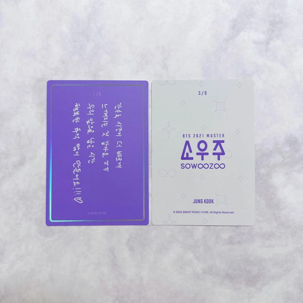 Item Description -This item is Japanese authentc item.Please rest assured. - Although this item has been in human hands once, it is in very good condition and is unused or very close to unused.However, please understand that this is a used item. - Please check the product images for details. BTS Sowoozoo Mini Photo Card Jungkook 2 Pieces If you have any questions about this item, please feel free to contact me. Payments - Payment methods must comply with ebay's terms and conditions. Prices do not include import duties and other taxes and fees, which are the responsibility of the customer. - If you are unable to pay, please let us know when you plan to make payment. Shipping - We will ship within 10 business days (excluding Saturdays, Sundays, and holidays) after confirming payment. - Normally, we ship via Economy Shipping, but we can ship via Expedited Shipping, which is the fastest shipping option, for an additional shipping fee. Please note that we may offer Expedited Shipping based on size or other reasons. Economy: 2-3 weeks Expedited Shipping: 2-7 days - If an item is returned as uncollected, you will be charged again for shipping to reship the item. - We always send items with tracking number. So you can place your order without worrying about delivery. You can track the delivery status at any time. Return Policies - Returns are accepted up to 30 days from the delivery date.If you received a faulty item, please contact me immediately with a picture of the part. - Return is not accepted if the damage is limited to the outer box of the product. About Importer's Obligation - Import duties, taxes, and charges are not included in the item price or shipping cost. These charges are the buyer's responsibility. Please check with your country's customs office to determine what these additional costs will be prior to bidding or buying. - Shipping documents will be marked as Merchandise and include the full purchase price. We are by law unable to undervalue shipments or mark them as "Gift," and cannot accept any requests to do so. Thank you for your understanding.