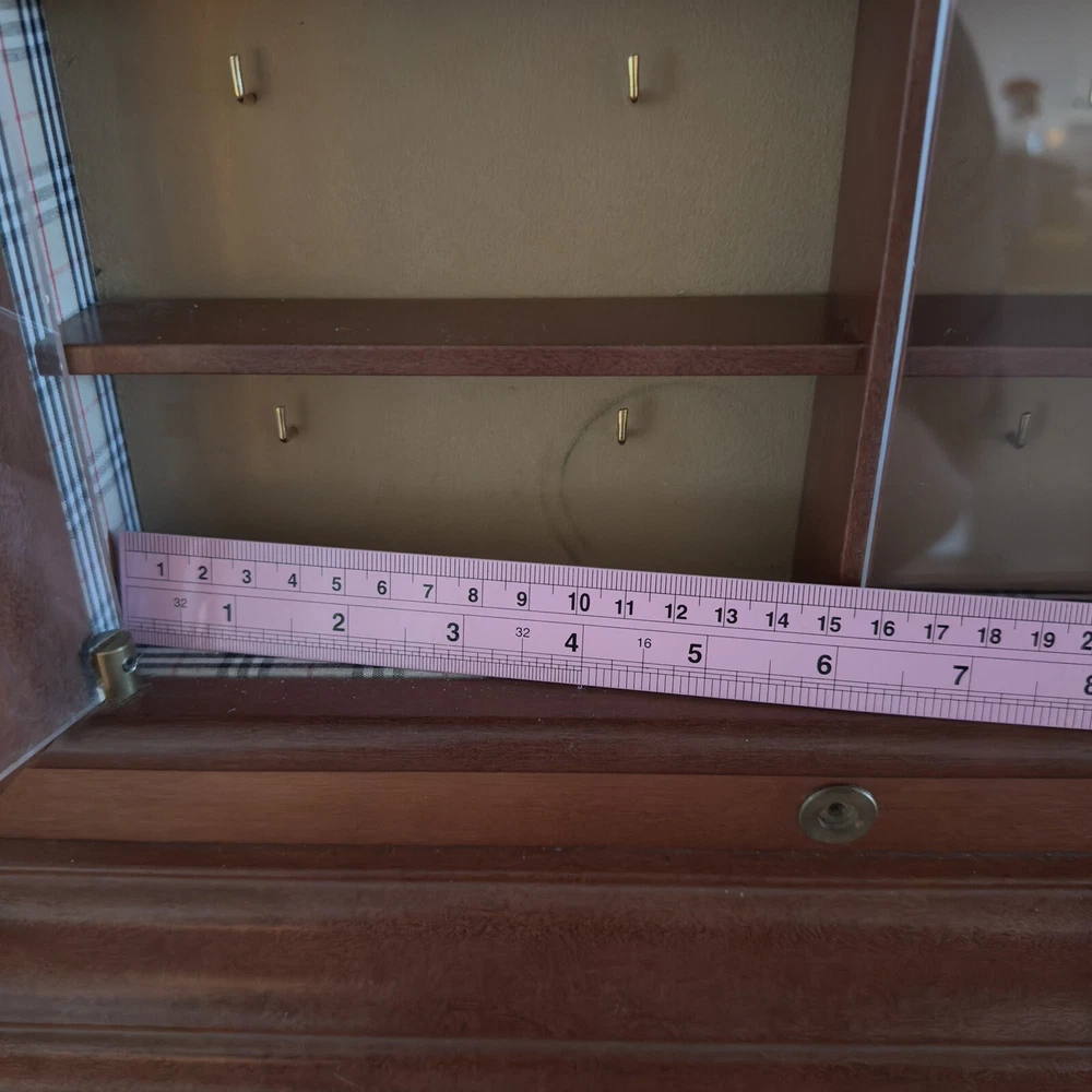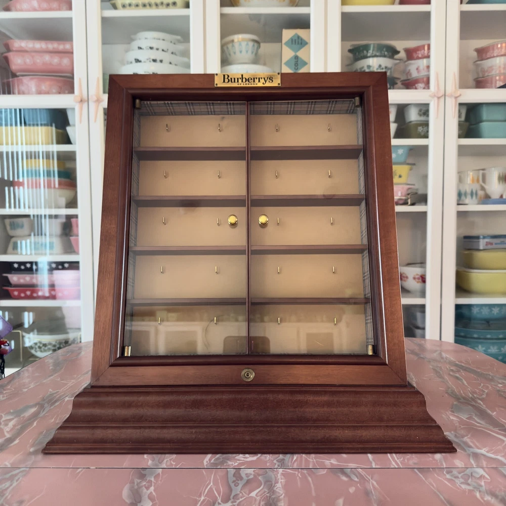 VERY COOL VINTAGE BURBERRY DISPLAY CASE (Nova Check Lining) MADE OF WOOD WITH ACRYLIC DOORS DIMENSIONS CAN BE FOUND IN THE PHOTOS I THINK IT IS MISSING A LOCKING MECHANISM BUT I CAN'T FIND A COMPARISON TO BE SURE WORKS AND DISPLAYS GREAT MADE TO HOLD EYEGLASSES BUT COULD FIT SMALLER SUNGLASSES SOME WEAR FROM AGE AND USE. SOME STAINS ON LINING SOME SCRATCHING TO THE ACRYLIC DOORS (VERY HARD TO PHOTOGRAPH) SCRATCHING AND KNICKS TO THE WOOD VERY DUSTY FOR EXACT SIZE - PHOTOS WITH A RULER ARE AT THE END OF THE ALBUM ABOVE THERE IS WEAR CONSISTENT WITH AGE SURFACE WEAR AND TONE LOSS NEEDS A GOOD CLEANING (LOST OF DUST AND GRIME BUILD UP) ORIGIN, AGE, MATERIALS USED, ETC ARE ALL EDUCATED GUESSES ON MY PART. THEY HAVE NOT BEEN TESTED PLEASE EXAMINE THE PHOTOS AND RESEARCH FOR YOURSELF BEFORE BIDDING/PURCHASING PLEASE INSPECT THE PHOTOS BEFORE PURCHASING . The photos provide the most accurate depiction of the condition. The piece in the photos is the piece you will receive . IF YOU NEED ADDITIONAL INFORMATION, OR PHOTOGRAPHS I AM HAPPY TO PROVIDE THEM UPON REQUEST. TERMS OF SALE JEWELRY HAS NOT BEEN CLEANED! My Jewelry is used and many times very dusty/dirty. I do not clean or sanitize the items before selling (in order to avoid damaging the pieces.) Please be advised your item will likely need a deep cleaning. YOU ARE PURCHASING A USED ITEM PET FRIENDLY HOME If you have allergies to dogs and cats or dog/cat hair. Please do NOT purchase . PLEASE VIEW ALL PHOTOS Condition of used items will vary. EXPECT NORMAL WEAR AND TEAR AT A MINIMUM "Normal Wear" of vintage, and used items may consist of: MISSING PIECES, MISSING PACKAGING, SURFACE SCRATCHING, LOOSE AND/OR MISSING STONES, TARNISHING, VERDIGRIS, GLUE RESIDUE, COLOR LOSS, STAINING, ODOR, MARKS, WEAR, WRITING, SCRIBBLES, SCRAPES, SCUFFS, SCRATCHES, SURFACE WEAR, PAINT OR TONE LOSS, CHIPPING, CRAZING, LUSTER LOSS, TEARING, WARPING, RIPS, HOLES, DUST, SMUDGES, PEELING, CREASING, DENTING, ETC. ETC. NOTE: I am a full-time reseller and collector. My items are purchased through estate sales & second hand stores. I cannot guarantee items are from a "smoke free" home. If you have an allergy to smoke, please do not purchase. There are NO REFUNDS , or returns on any of my items. Unless there was a mistake or misrepresentation on my part. I do my best to provide clear photos and detailed descriptions. If you have any questions about the item, I will gladly provide any other information or photos I have BEFORE PURCHASING. DISCLAIMER: I've tried my best to identify, and describe the products in my shop truthfully. I value each piece using internet research, guide books, and the knowledge I've obtained over the years. Please do not purchase based on my opinions alone. View the photos and use your own resources to determine if an item is what you're looking for. I am not a certified appraiser or expert nor do I do I wish to present myself as one. THANK YOU SO MUCH FOR LOOKING check back often for new items