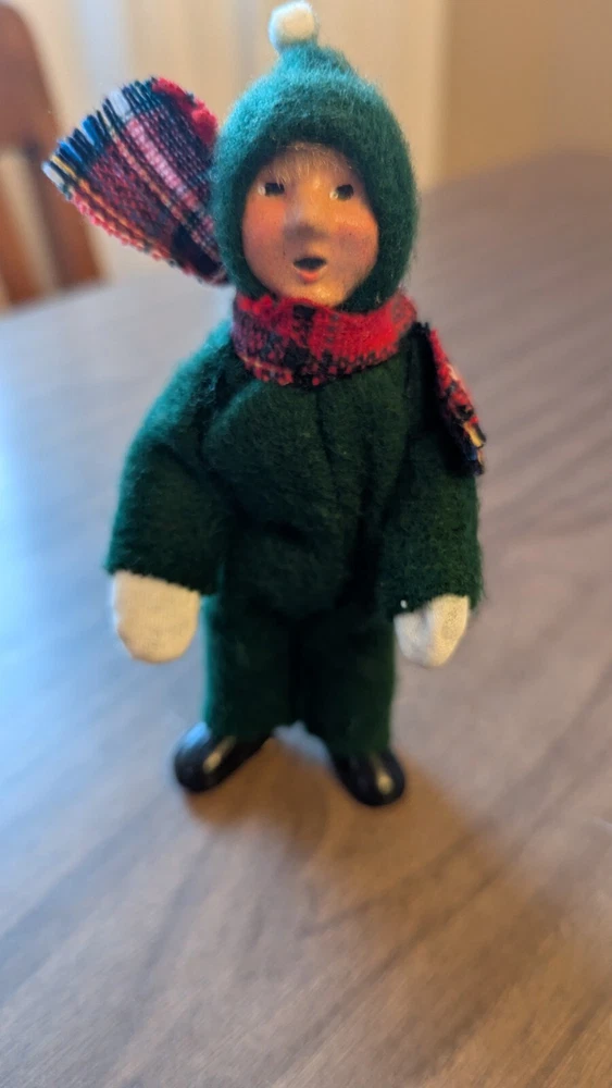 Country/Region of Manufacture: United States Type: Figurine Seller Notes: “Excellent” Pattern: Snow Time Period Manufactured: 1990-1999 Subject: boy Color: Green Department: Boys Occasion: Christmas Brand: Byers' Choice Year Manufactured: 1990