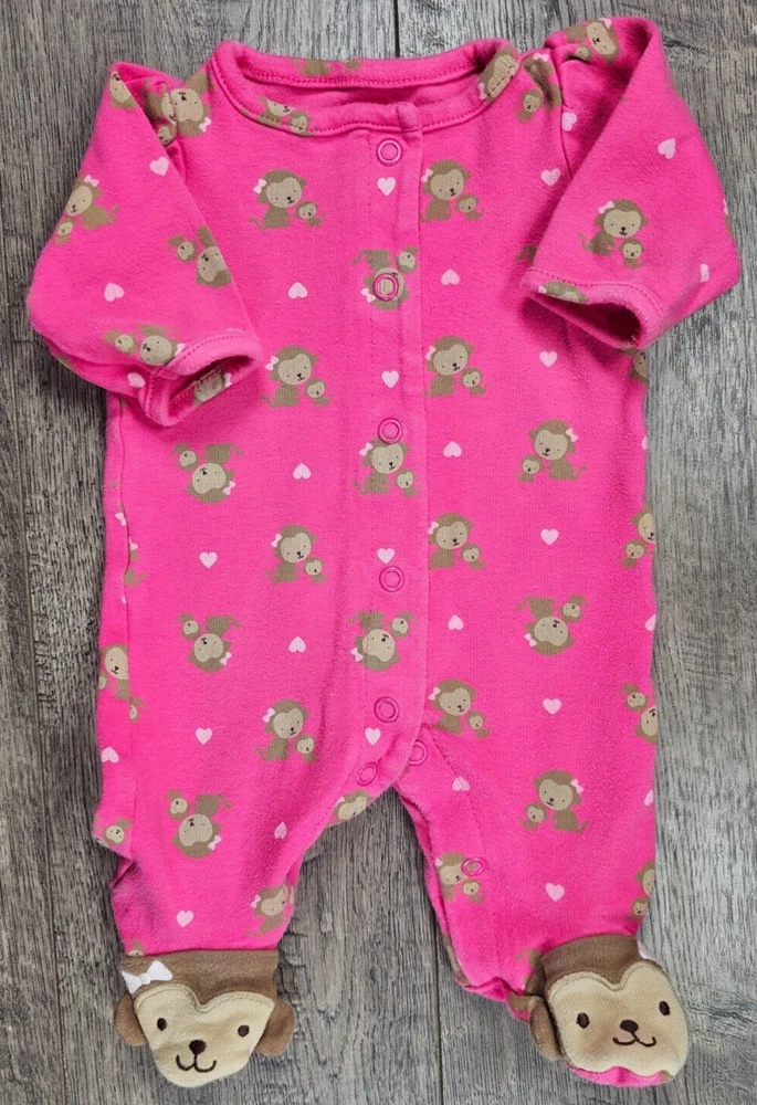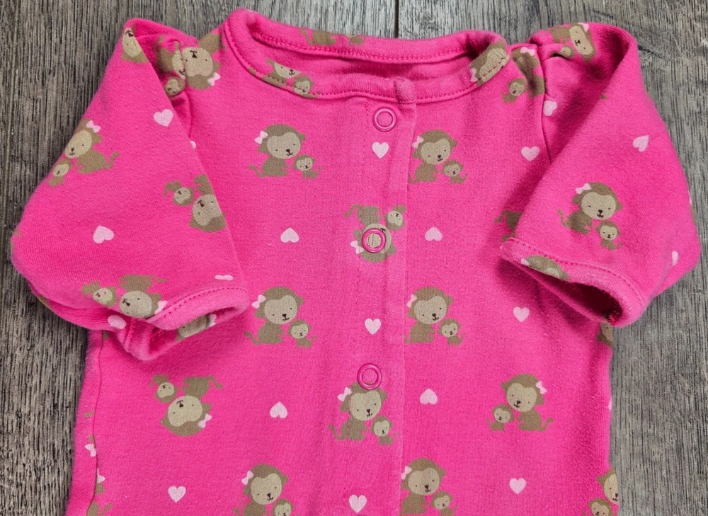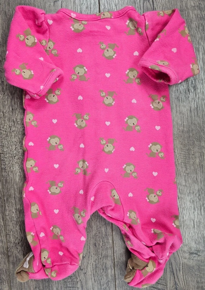 Baby Girl Clothes Child Mine Carter's Newborn Pink Monkey Footed Outfit