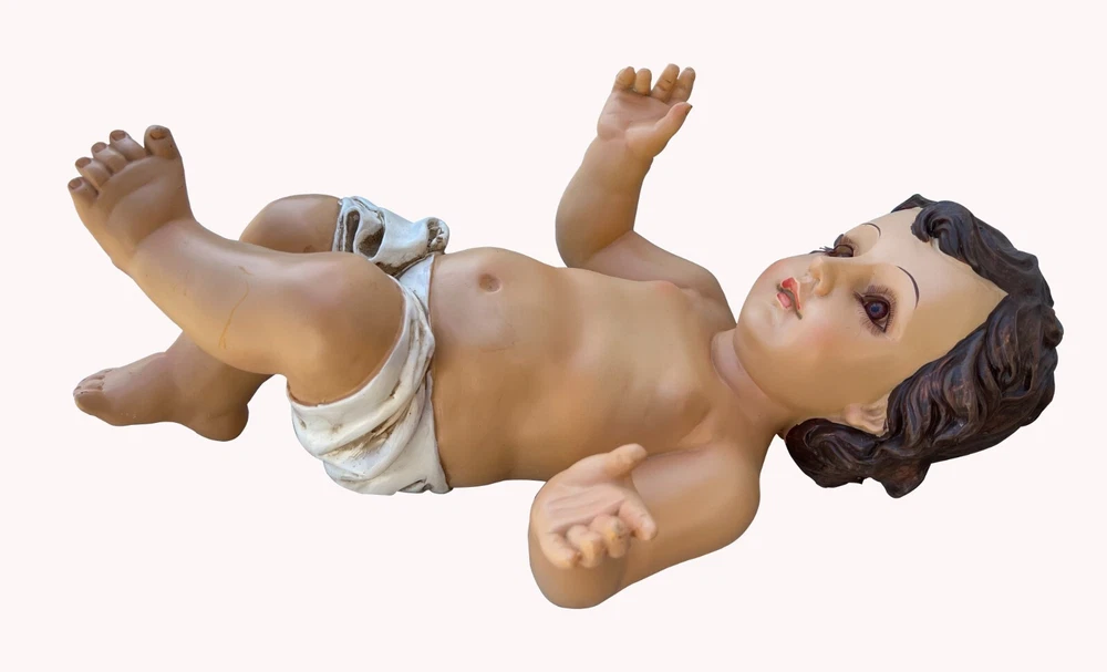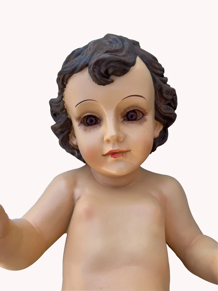 About this item Hand Painted Baby Jesus Christ Figurine Multi Color Made out of Resin and Hand Painted New design, details and craftsmanship Perfect gift for those who love religious inspiration Size: 16x9x5.5inches