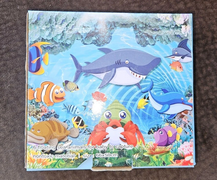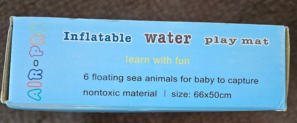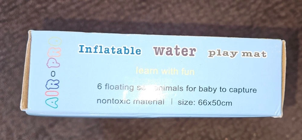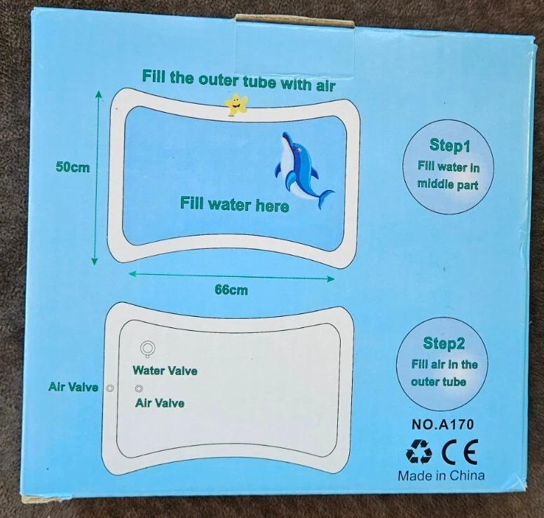 Water Play Mat for Infants and Toddlers Baby Toys for 3 to 24 Months, Strengthen Your Baby's Muscles, Portable. The Yeeeasy Tummy Time Water Mat is a fun and interactive playmat designed for babies aged 3 to 12 months. This blue rectangular mat is made of Polyvinyl Chloride and is waterproof, making it perfect for water play. The mat measures 26 inches in length and 20 inches in width, with a package dimension of 7.64 x 7.44 x 1.14 inches. The item model number is YE-01 and it weighs only 6.3 ounces, without requiring any batteries. This playmat is great for developing your baby's motor skills and encouraging tummy time. Opened just to inspect. This is almost brand new.