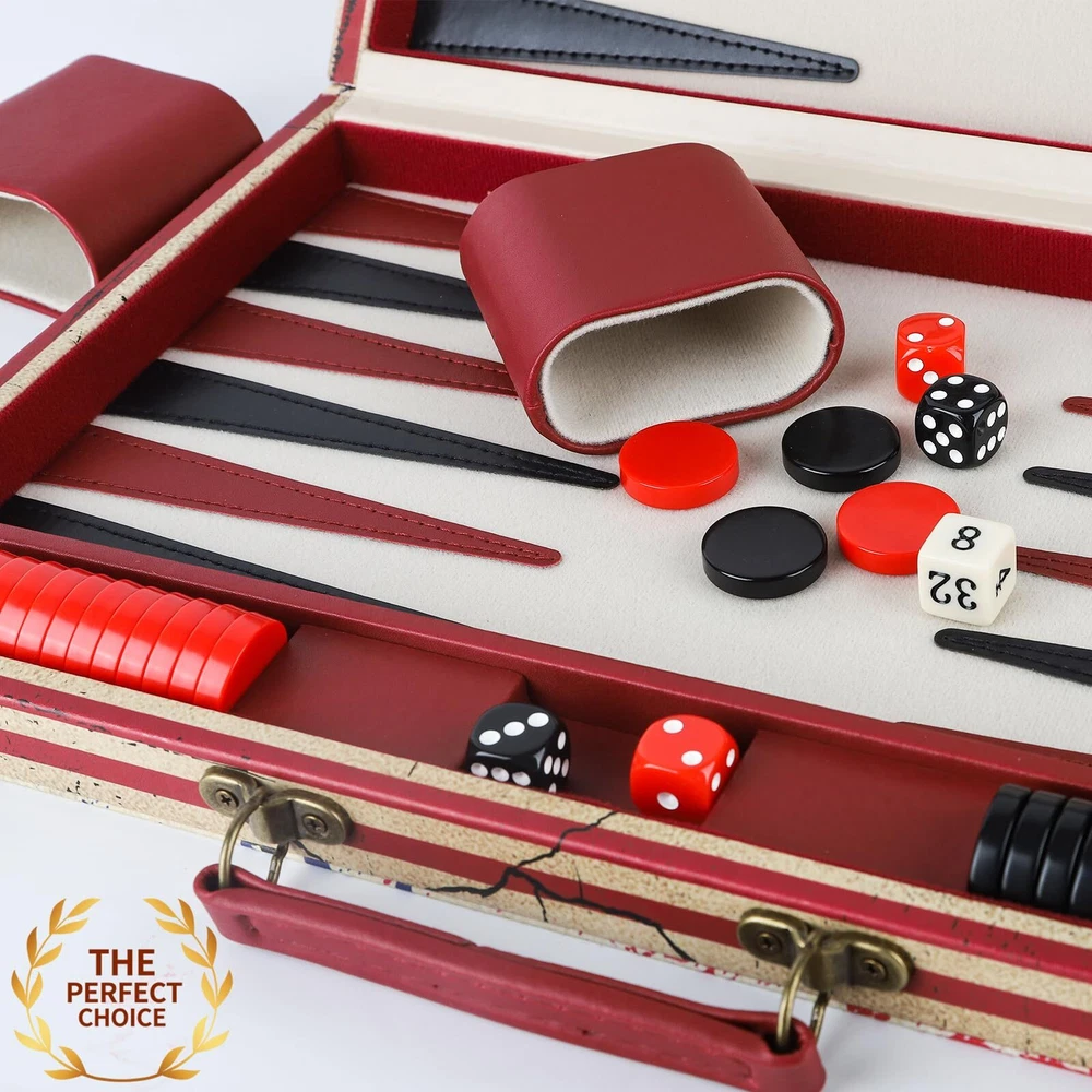 American flag design. Make America Great Again. Qulity leather covered. Classic backgammon game ideal family game night playing. Perfect Size : OPEN 15*19*1INCHI CLOSE 15*9*2INCH Package Includ: Backgammon Board, 2 (pairs) x Playing Chips (32 Backgammon Pieces in total), 3 (pairs) x Dice (4 in total), 1x Double Coub, 2 x Dice Shackers and detailed instructions .