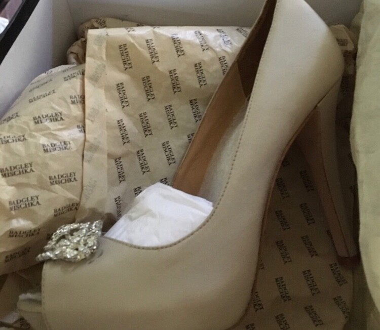 Elevate your ensemble with these stunning Badgley Mischka Crystal detail platform heels. Designed with an open toe silhouette and crafted from luxurious satin material, these beige heels are perfect for weddings, parties, or formal events. The rhinestone accents add a touch of glamour, making them a must-have addition to any shoe collection. Perfect for the fashion-forward woman who wants to make a statement with her footwear.